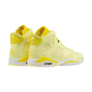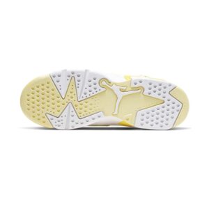 Made exclusively for kids, the Air Jordan 6 Retro GG ‘Citron Tint’ updates the classic silhouette with a leather upper finished in a monochromatic pale yellow hue. Perforated detailing offers ventilated comfort, while a molded spoiler at the heel is good for easy on and off. Atop the tongue, an embroidered yellow rose is superimposed by a black Jumpman logo. Additional floral designs make their way to the collar lining and interior tongue.