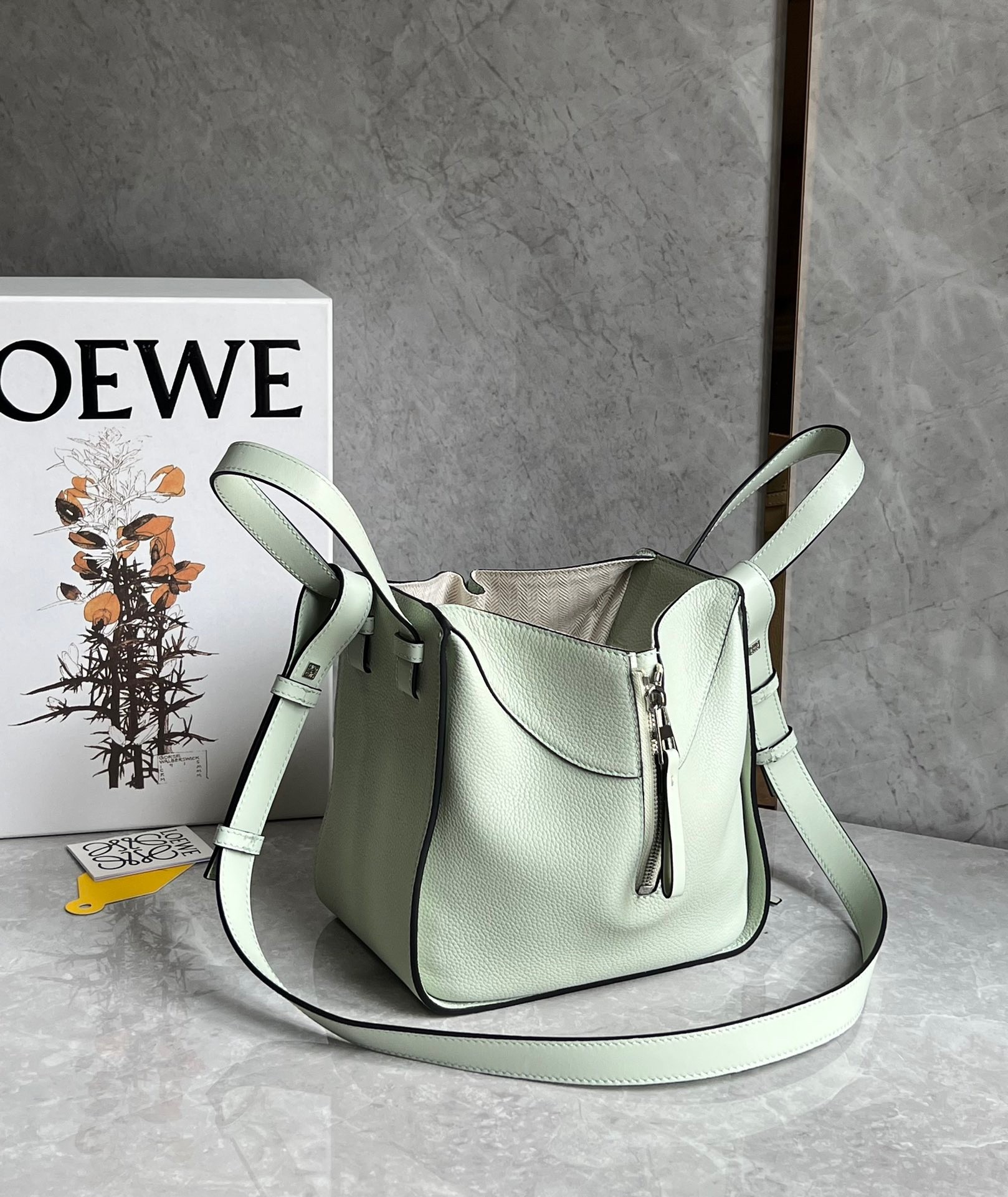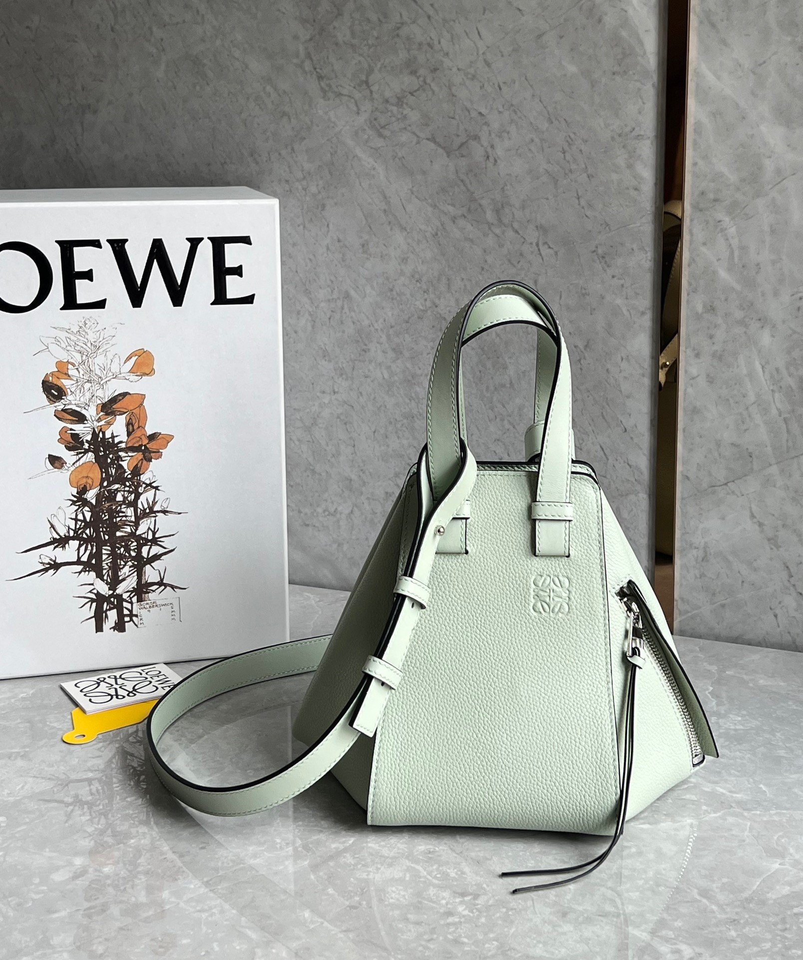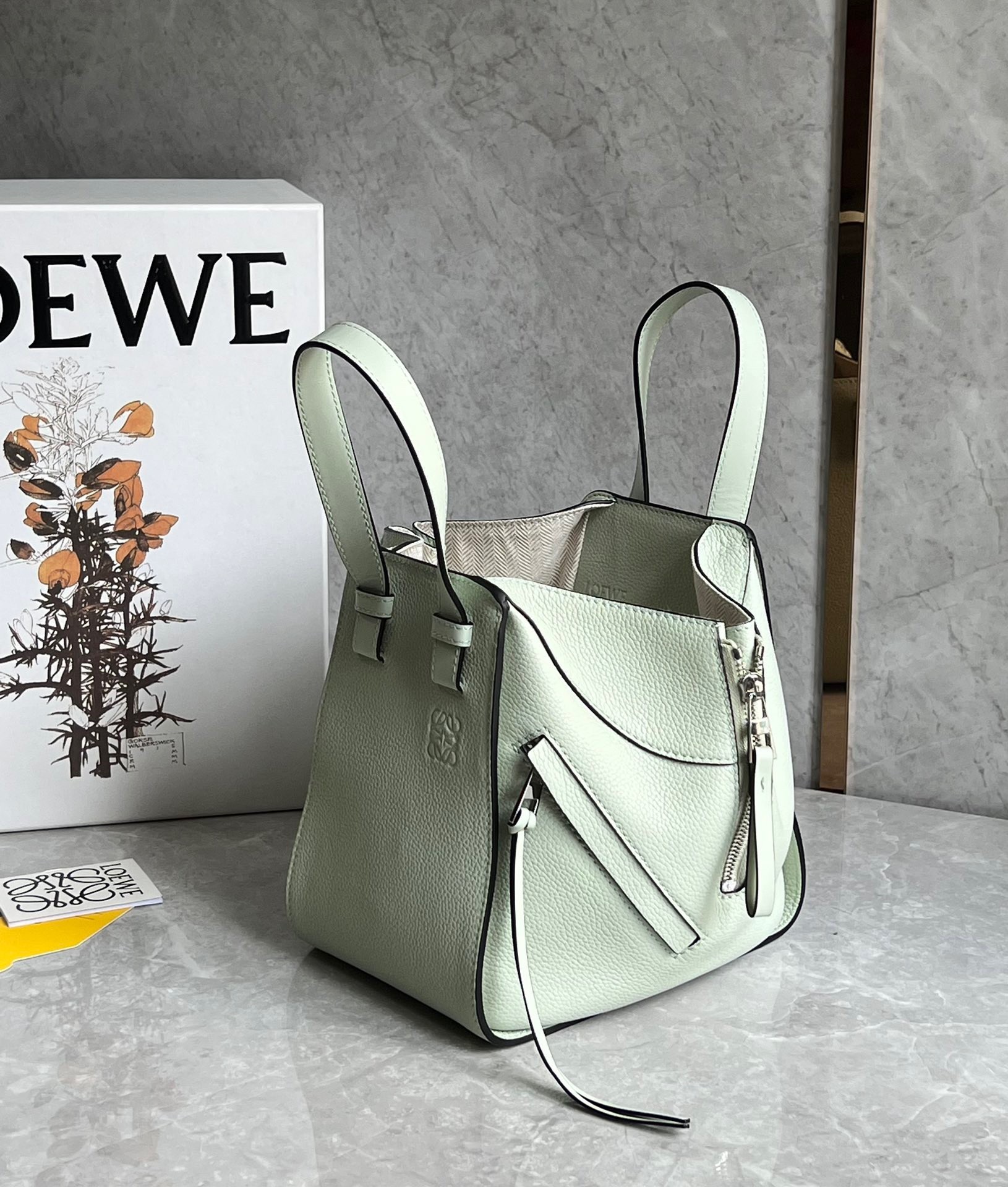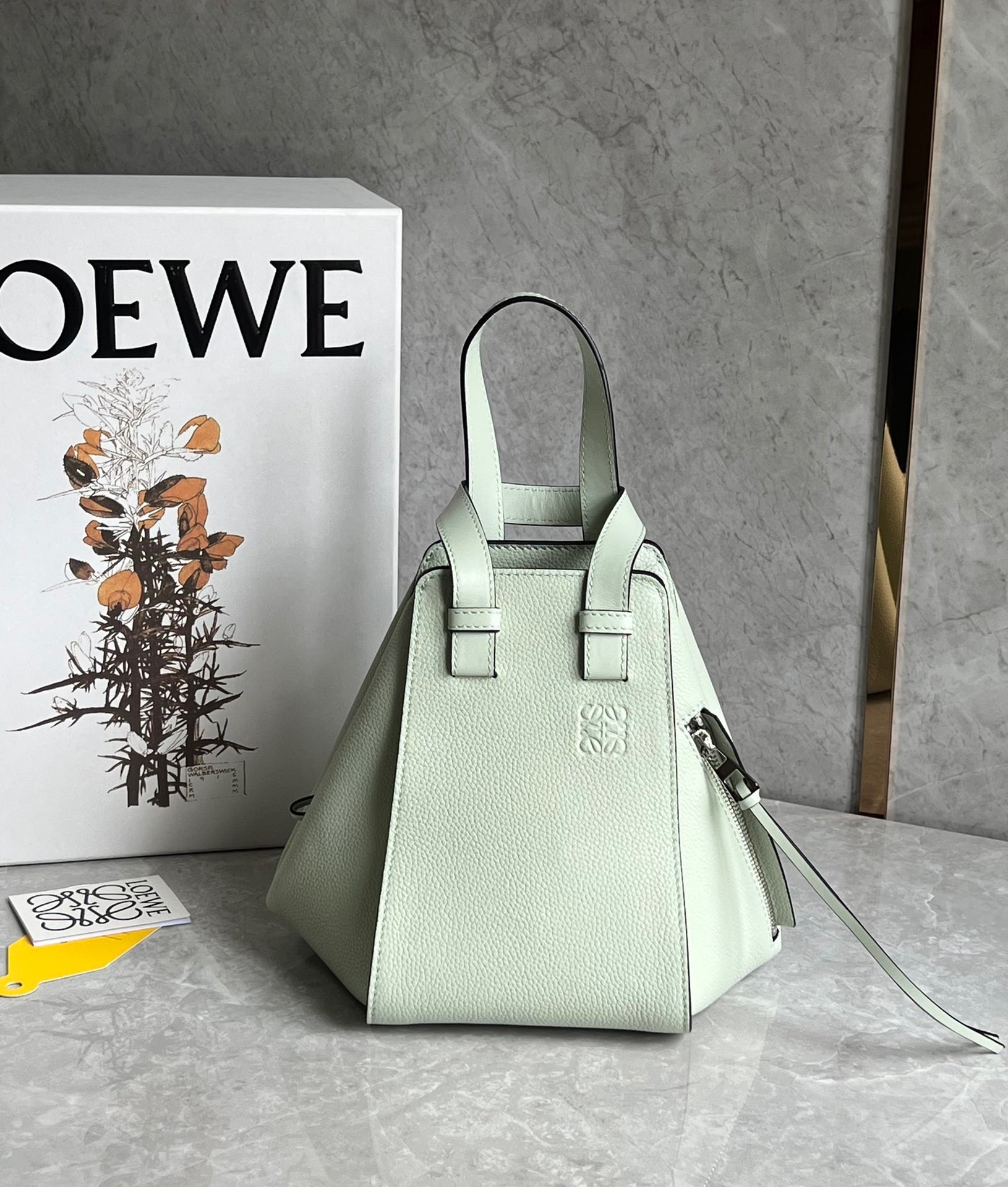 Loewe Compact Hammock Bag in Light Celadon Grained Calfskin