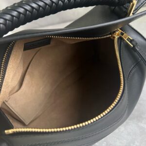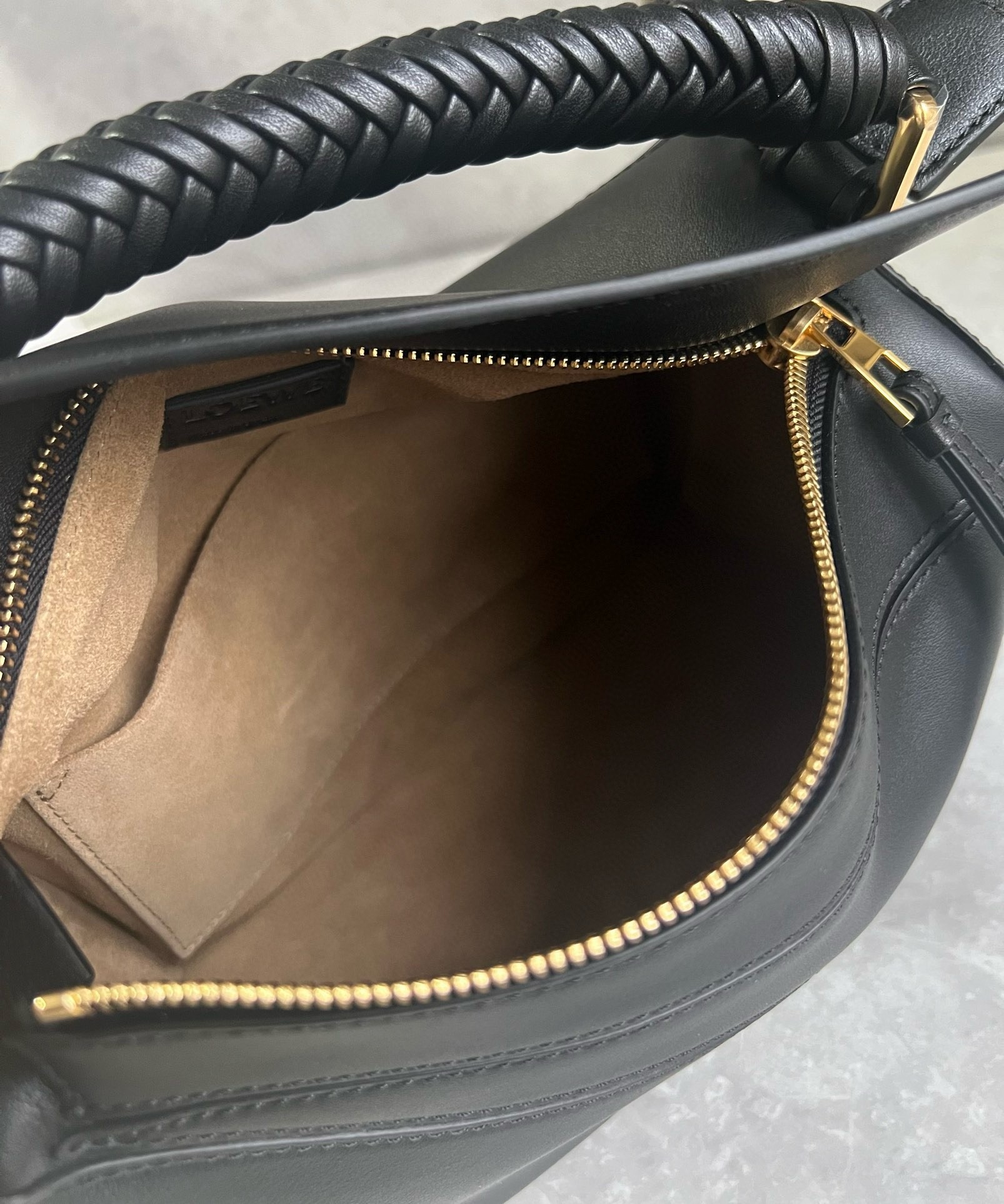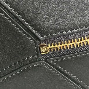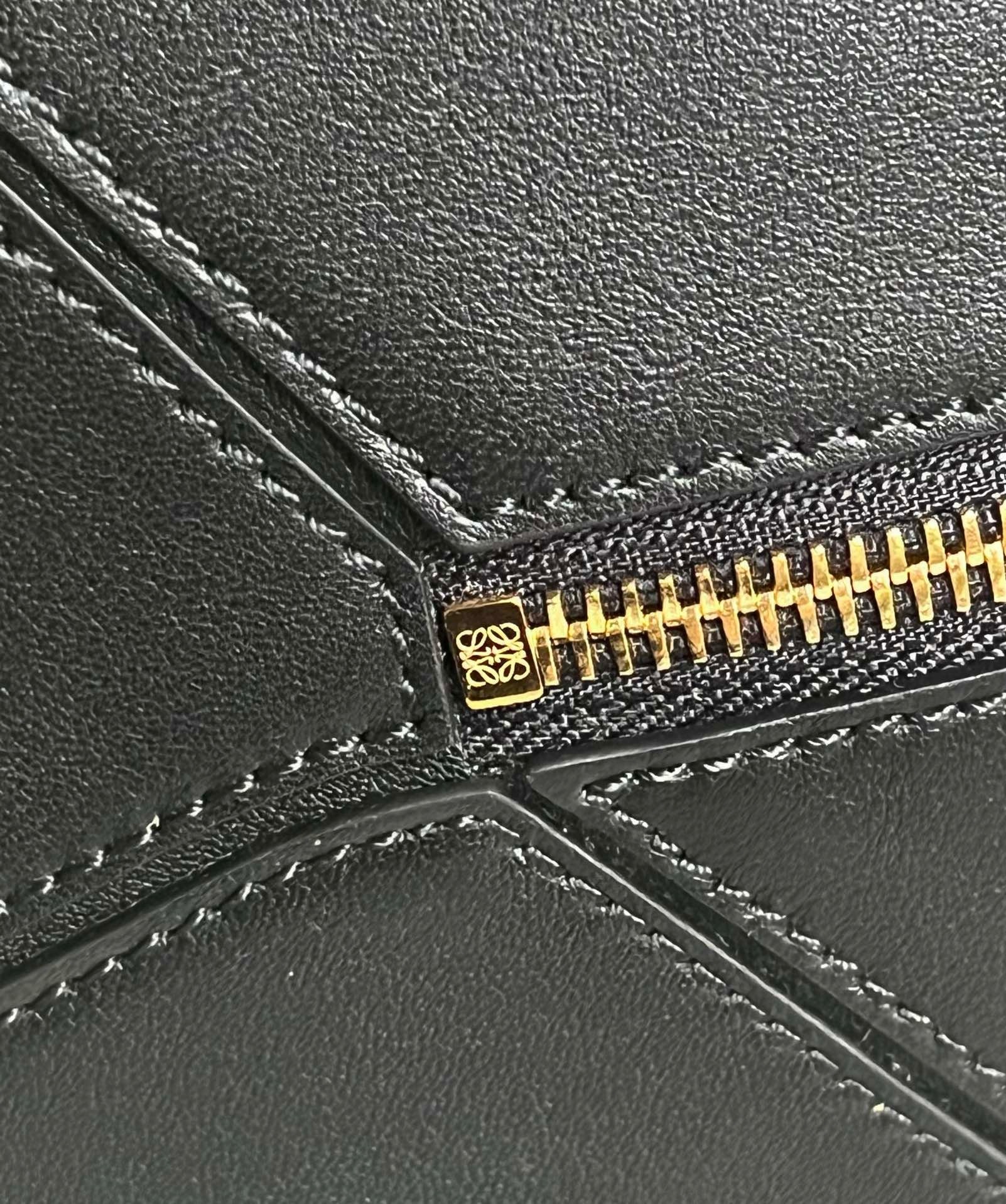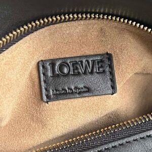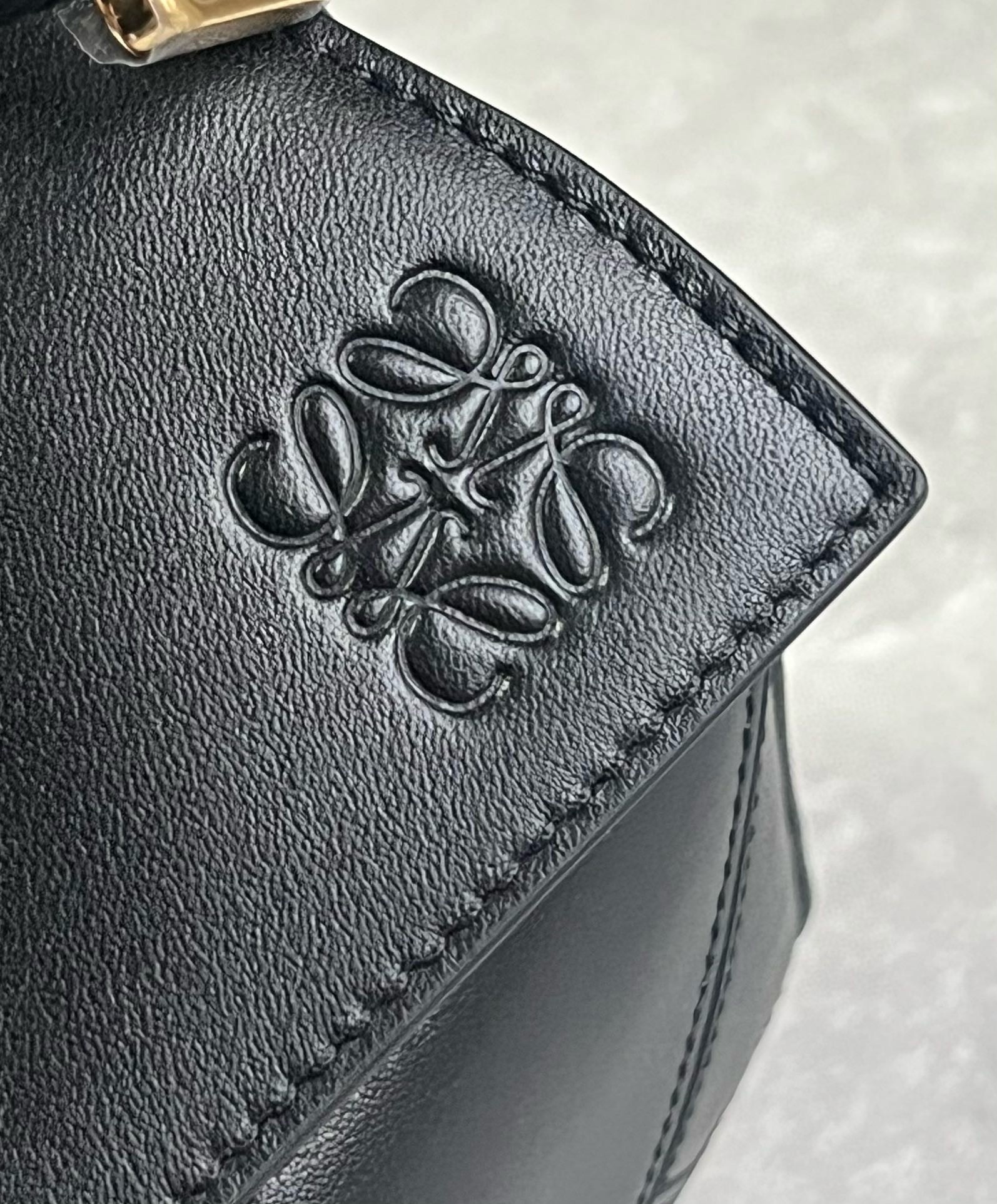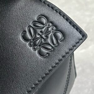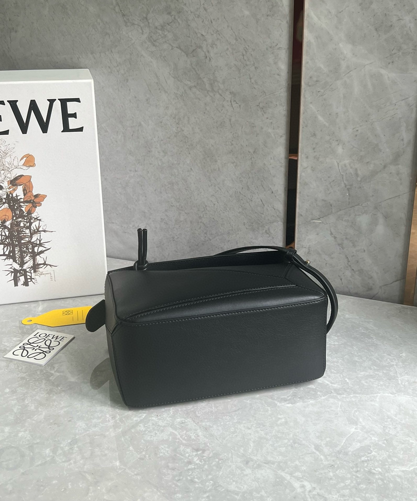 Loewe Puzzle Small Bag in Black Calfskin with Woven Handle