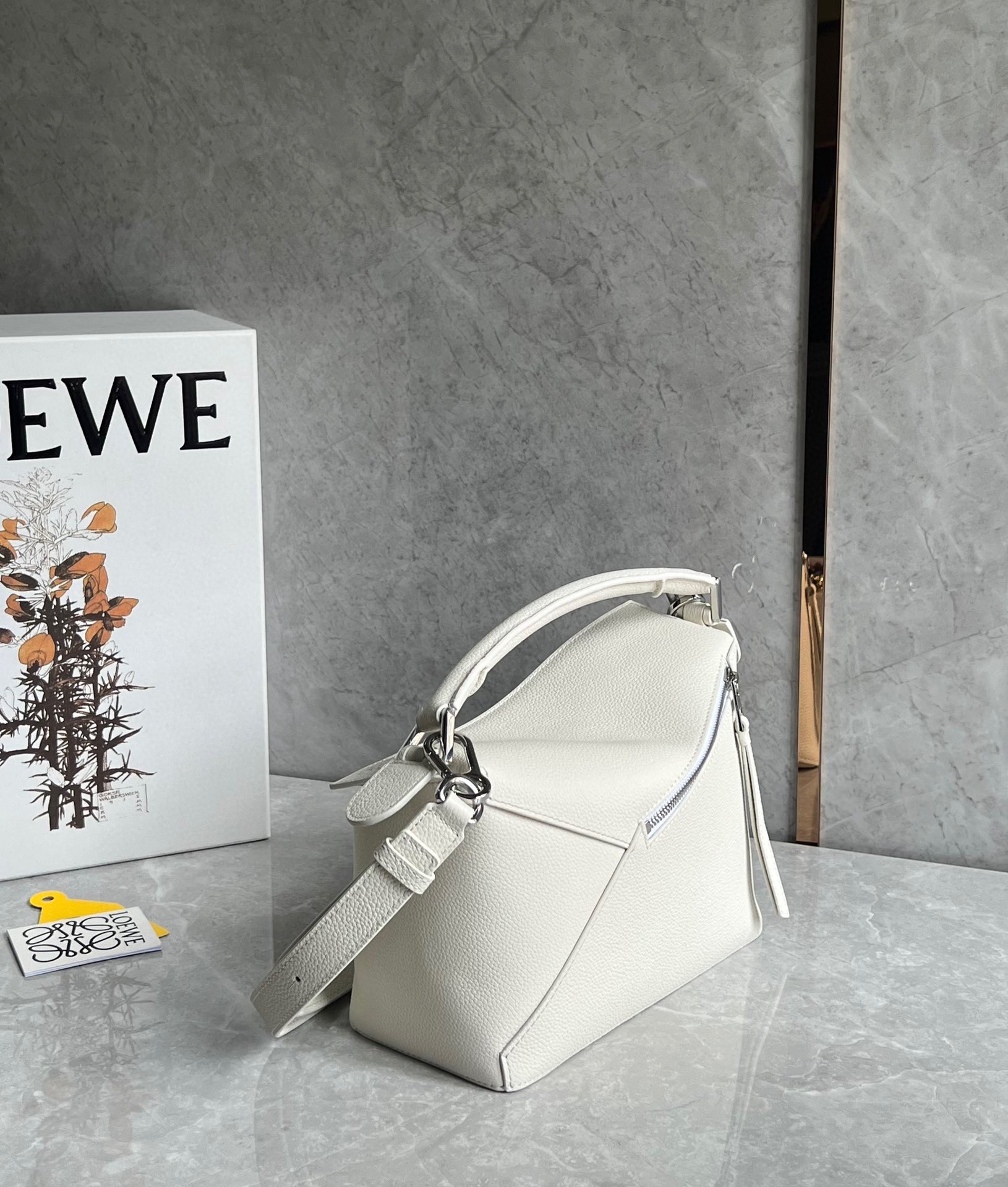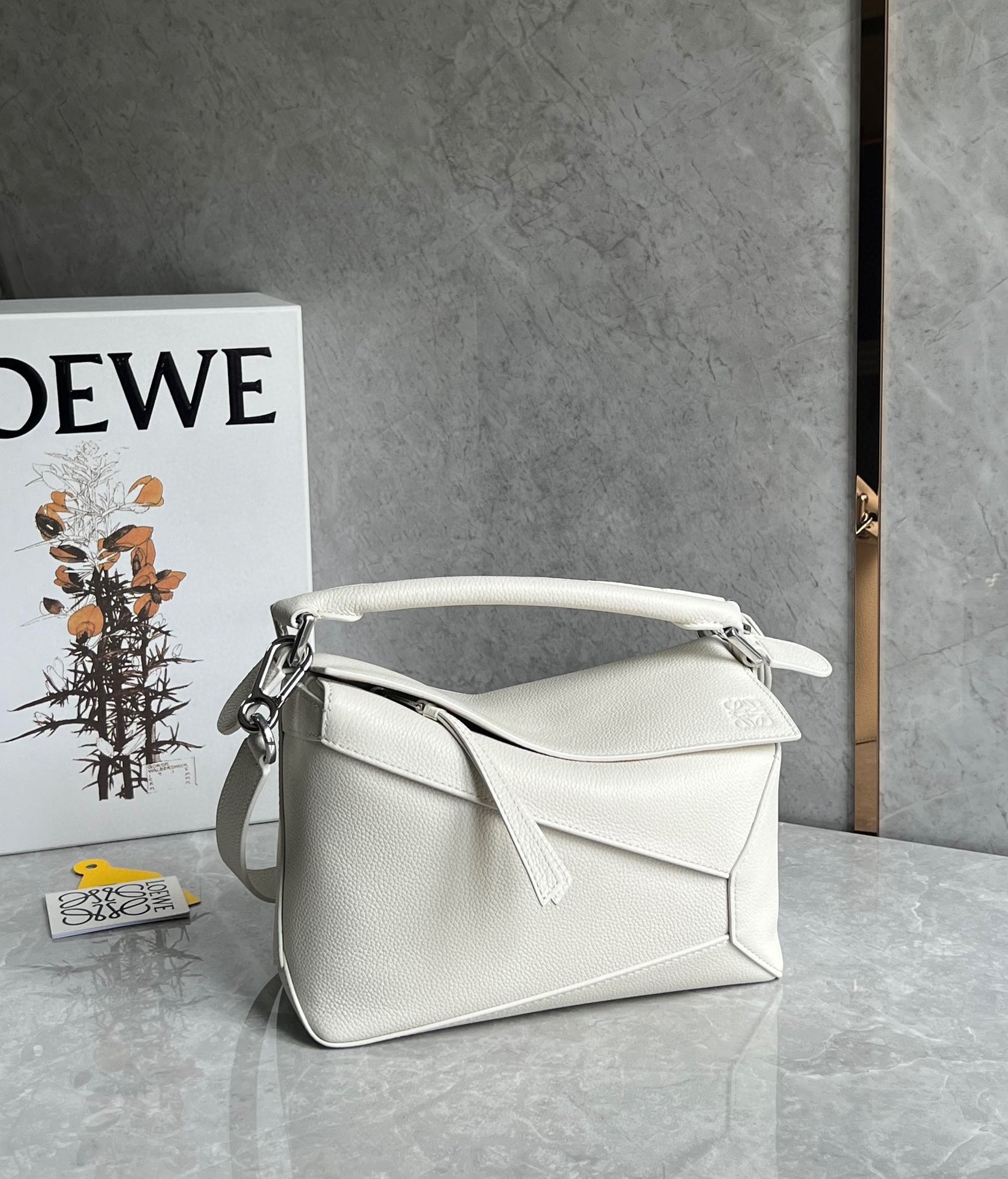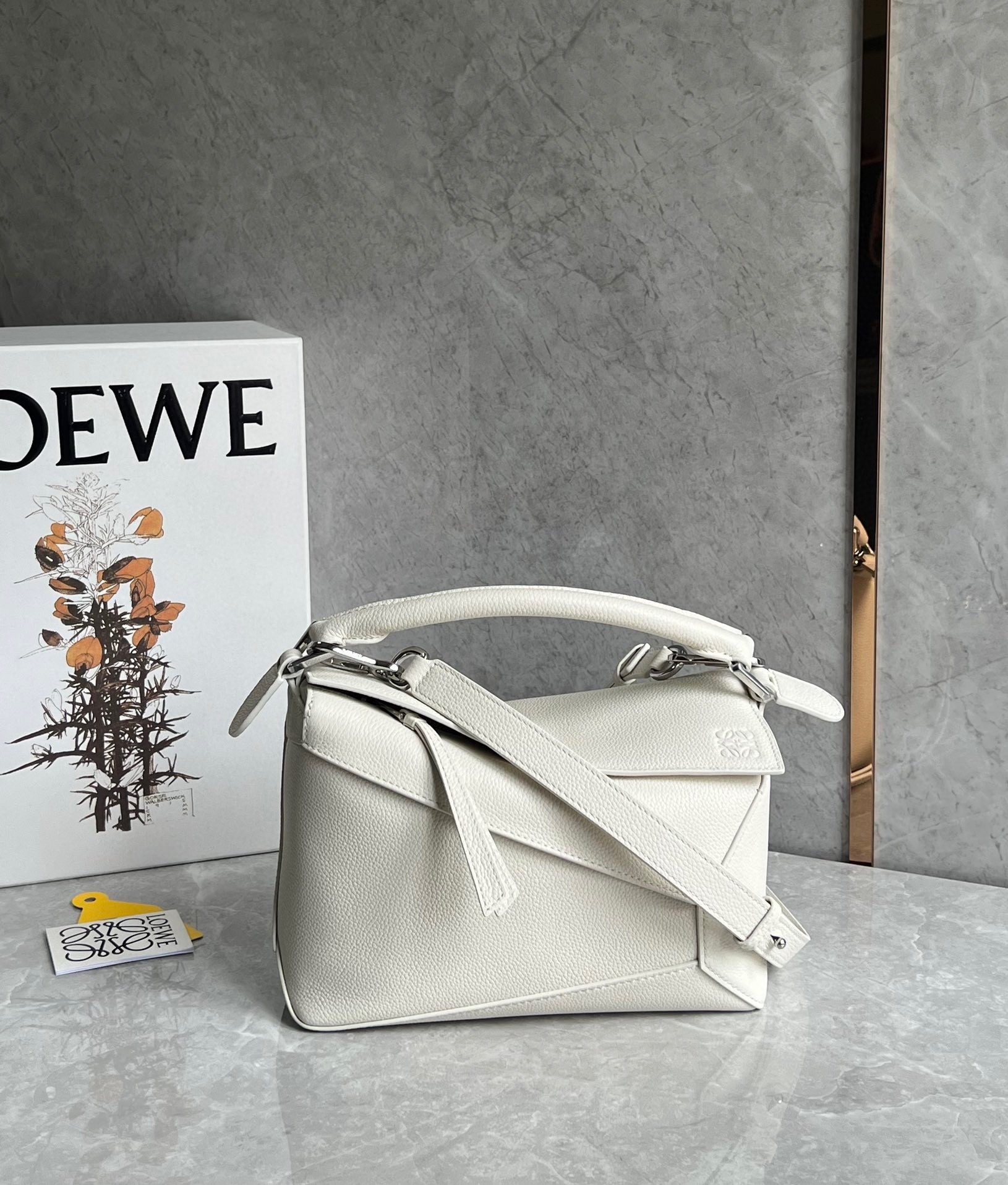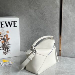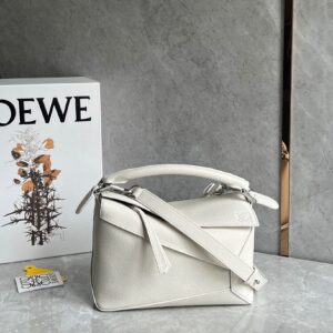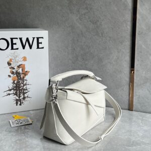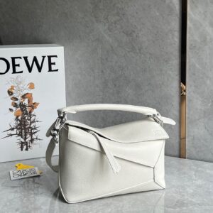 Loewe Puzzle Small Bag in White Grained Leather