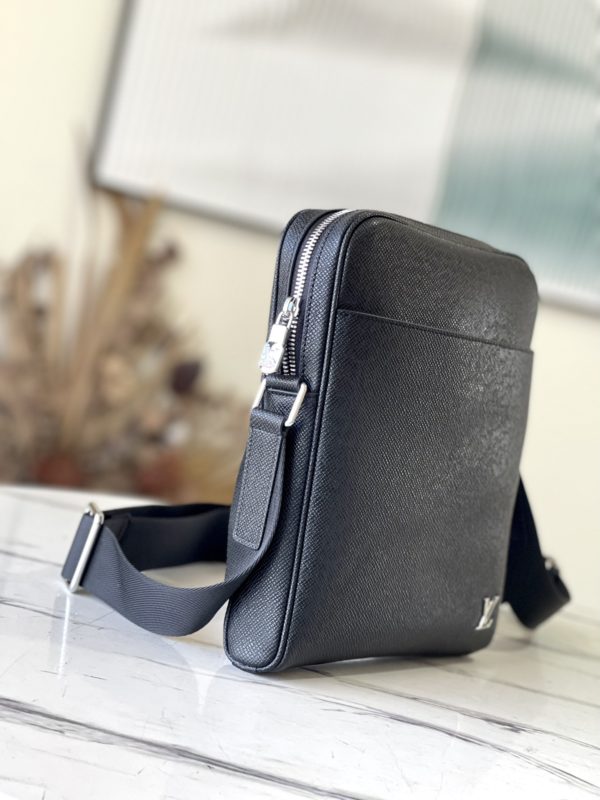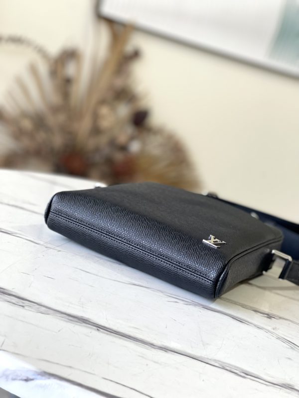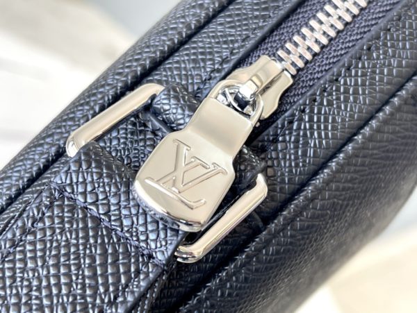 Alex BB Messenger Bag concentrates the essence, and integrates daily necessities into a neat configuration. A secure zip compartment wrapped in classic two-tone embossed Taïga leather holds a long wallet, cell phone, cards and keys. The fabric shoulder strap can be adjusted in length as you like, providing a hands-free carrying experience.