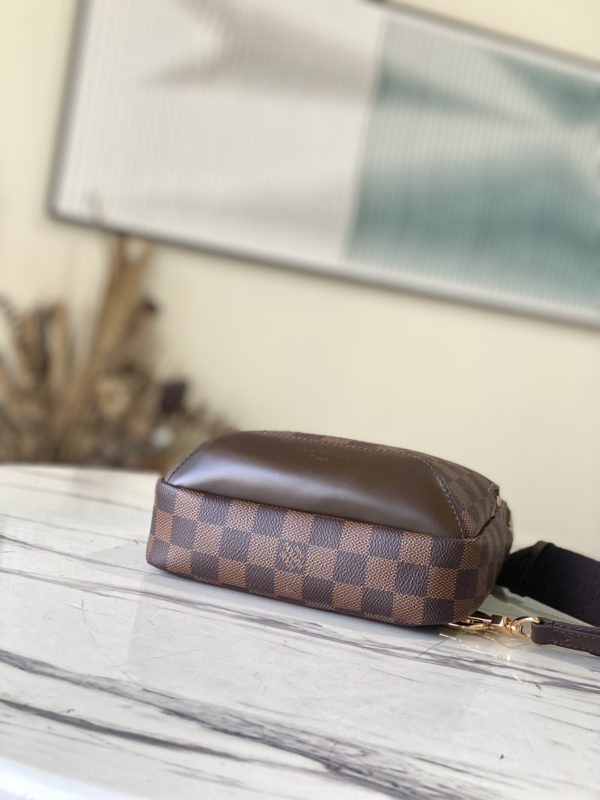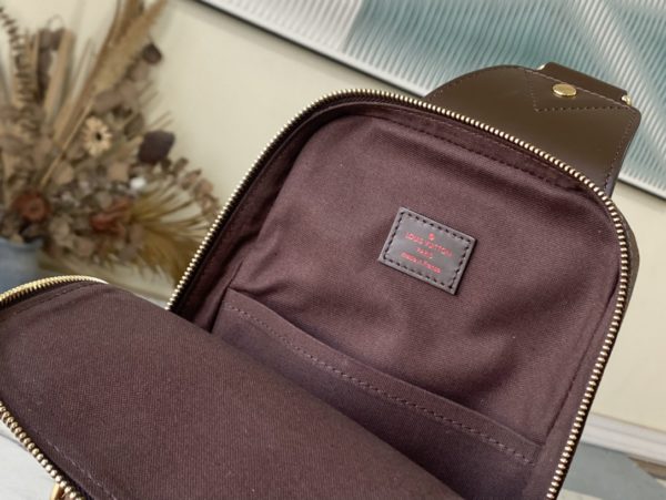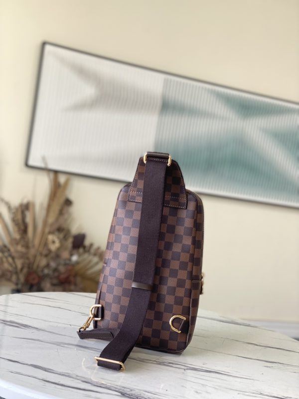 AVENUE Shoulder Bag Chest Bag in Damier Graphite canvas This Avenue shoulder bag in Damier Graphite canvas is the perfect companion for urban life. Small and stylish, it shows a casual and unruly attitude. The “smart” shoulder strap design fits on the left or right shoulder The double zipper closure on the back keeps valuables secure! ‘