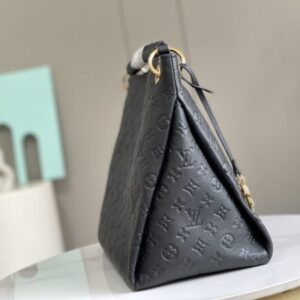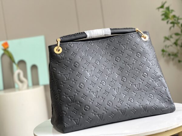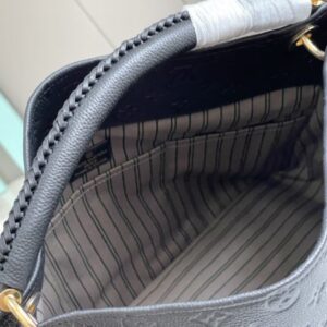 This artistic shoulder bag is updated with carefully crafted details in soft Monogram canvas, showing the skills of the house. The woven top handle is woven with strips of colored leather, each individually edge-dyed for a refined, dimensional effect. An oversized LV leather charm adds a playful twist to this classic bohemian look. Dimensions: 46.0 x 32.0 x 22.0 cm