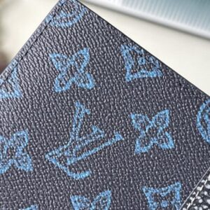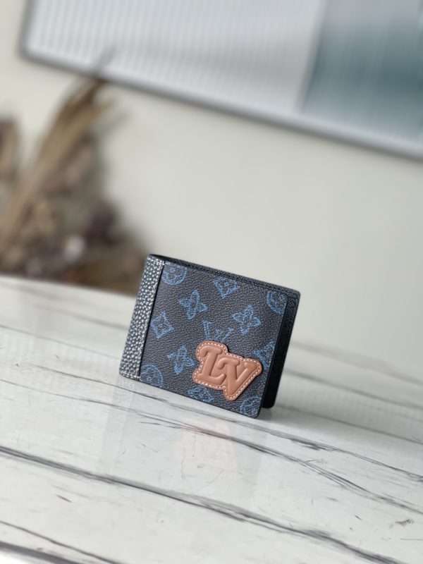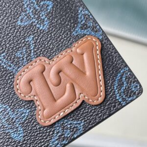 Crafted from vintage-inspired blue Monogram coated canvas, embellished with an LV Initials signature leather patch for a nostalgic feel. Slim and functional wallet with one compartment for bills and eight slots for business cards.