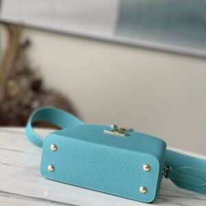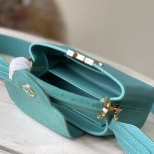 Green This Capucines small handbag is made of Taurillon leather to shape the exquisite shape. The flap, handle and L letter are wrapped in ostrich leather. The flap can be placed outside or inside to read the L logo. The wide leather shoulder strap is detachable Full of modern style.