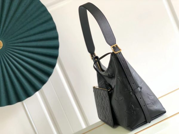 Matching details The CarryAll medium handbag is made of Monogram Empreinte embossed leather. The ample configuration has a neat inner layer, and the large inner bag adds functional elements. The matching Monogram embossed zip clutch is secured by a leather strap. A personal companion for urban life.