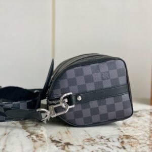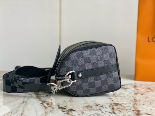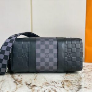 Heiger men’s bag pillow bag series CITY KEEPALL handbag This City Keepall handbag combines Damier Infini embossed leather and Damier Graphite canvas to present the concise lines of the checkerboard pattern. The Damier motif is embellished with wide jacquard shoulder straps, richly detailed diagonally to the Louis Vuitton Paris signature.