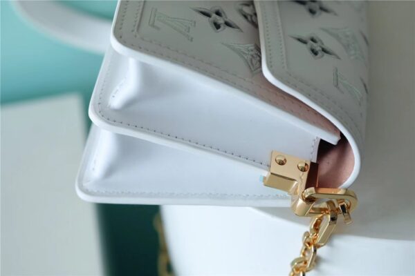 s of the classic Dauphine handbag series: the early spring series is an improved version designed by Nicolas Ghesquière, the artistic director of women’s wear. It combines Monogram canvas and Monogram Reverse canvas with chain shoulder strap and magnetic lock. M20730 light coffee color m20739 white full leather embossing Hollow flower embroidered chain shoulder straps Double shoulder straps Horizontal Daphne Show brand tradition in a modern style Show Louis Vuitton’s fashion endowment Ideal for lovers of Monogram canvas.