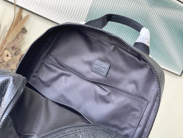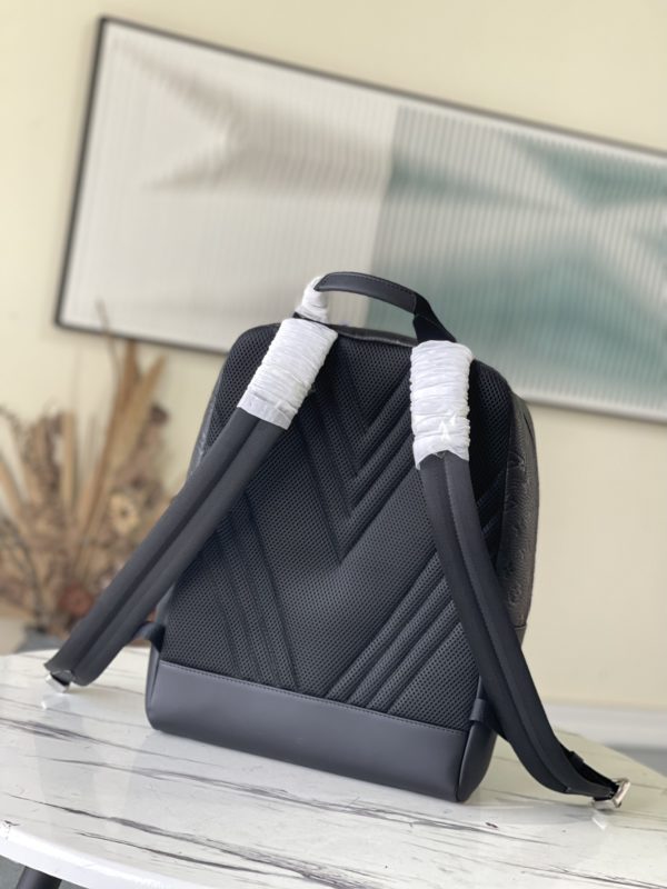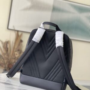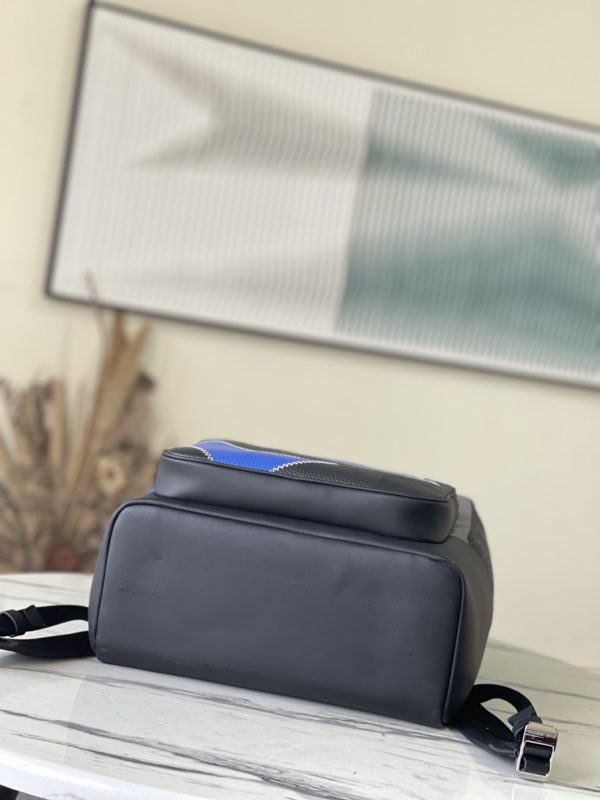 This Dean backpack is stitched with plain calfskin and Monogram embossed Taurillon leather, rendering eye-catching color blocks for the elegant box-shaped design. Zig-zag stitching outlines an oversized logo, and a zip front pocket provides easy access to essentials.
