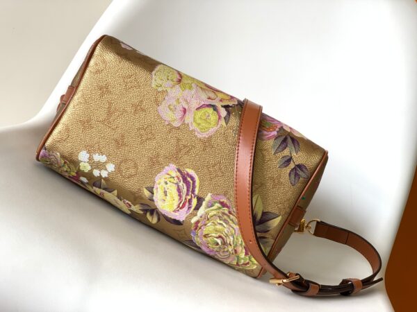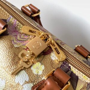New Gold Scattered Flowers Color Printing from the top original independent home. This OnTheGo handbag is made of Monogram Empreinte cow leather. The classic Monogram pattern has been printed successively and presented on the dazzling leather body. Plenty of room for a laptop, and long and short handles allow for a variety of carrying options.