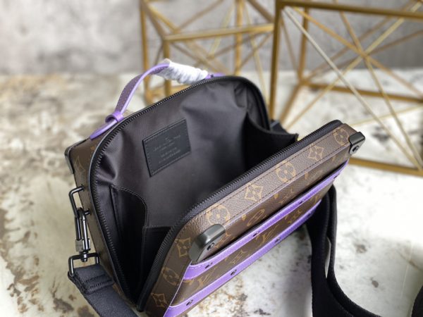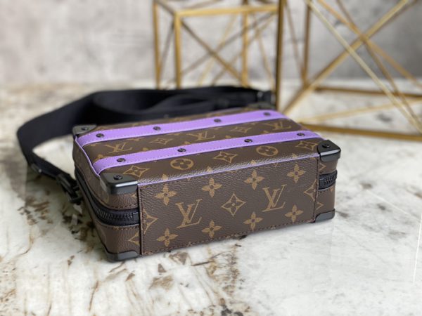 Presbyopic purple men’s messenger bag series HANDLE SOFT TRUNK handbag This Handle Soft Trunk handbag is made of Louis Vuitton’s iconic Monogram Macassar canvas, combined with rivet corners and leather reinforcement straps, evoking the memory of the brand’s box-making tradition. The sleek shape and detachable shoulder strap make it easy to carry small electronics and personal needs. Wide mouth design provides easy access to items.