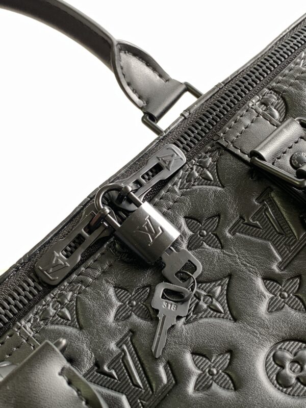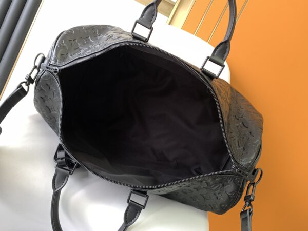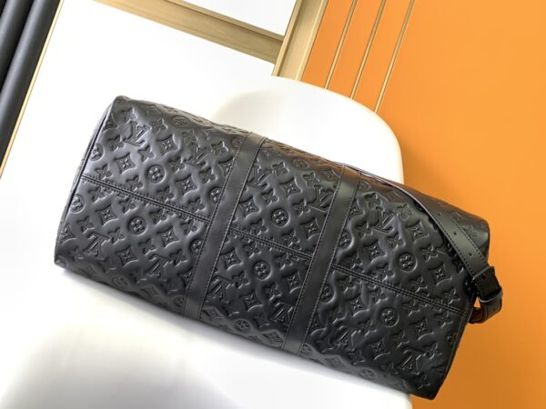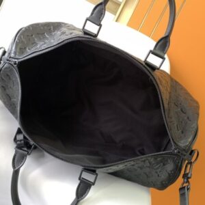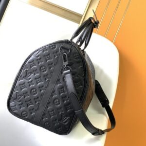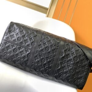 Keepall BANDOULIÈRE 50 travel bag is Monogram Shadow leather with full-width Monogram embossing and matte metal parts to achieve a minimalist design. The cabin luggage size is suitable for short trips. Born in the 1930s, the Keepall line of soft travel bags is as classic as it is today.