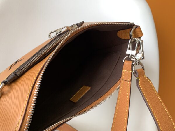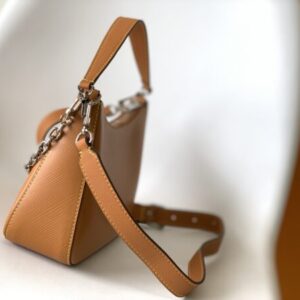 Marelle handbag is made of Epi grain leather, and the detachable canvas zipper bag in the outer bag is fixed by a chain. Attach the top handle or the adjustable shoulder strap to carry it by hand, on the elbow, over the shoulder, or across the body.