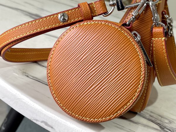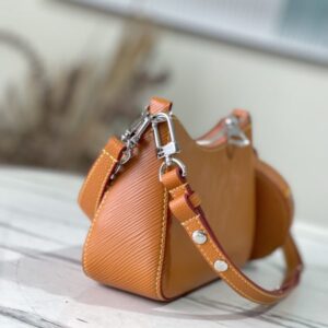 The Marellini handbag is made of Louis Vuitton’s signature Epi leather, which integrates the agile elements of the Marelle handbag into a more compact shape. The round coin purse can be removed at will, and is fixed by a chain in the front patch pocket of the mirror.