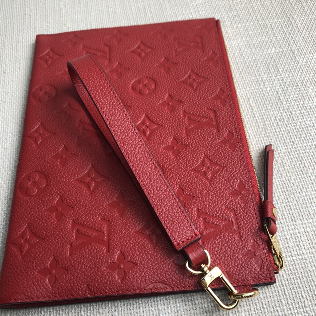 The Mélanie medium clutch is made of soft Monogram Empreinte leather with Monogram embossing slightly on the surface, with a detachable wrist strap, V-shaped front pocket and card slot, showing the fusion of elegance and function.