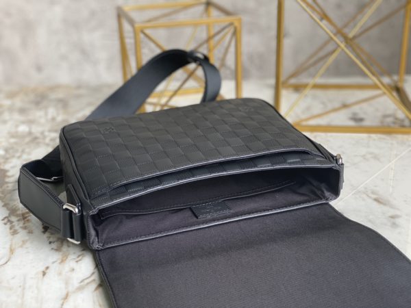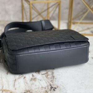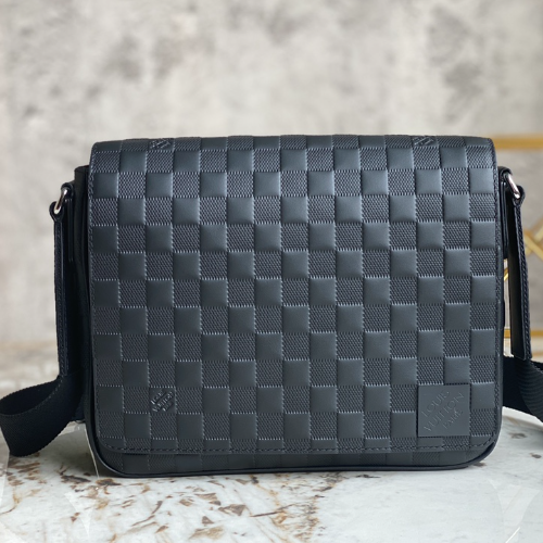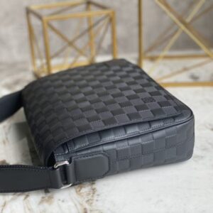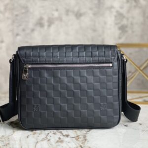 Full leather black grid men’s bag messenger bag series DISTRICT small messenger bag This district small messenger bag is made of Damier Infini coated canvas, with magnetic buckle closure and zipper back pocket, enriching daily travel with classic style. Adjustable shoulder strap marked with Louis Vuitton logo.