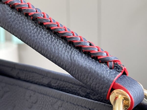This artistic shoulder bag is updated with carefully crafted details in soft Monogram canvas, showing the skills of the house. The woven top handle is woven with strips of colored leather, each individually edge-dyed for a refined, dimensional effect. An oversized LV leather charm adds a playful twist to this classic bohemian look. Dimensions: 46.0 x 32.0 x 22.0 cm