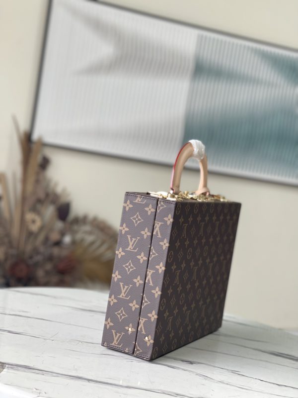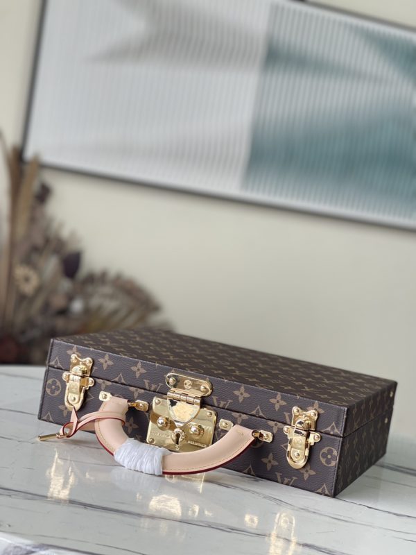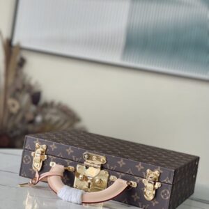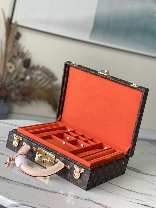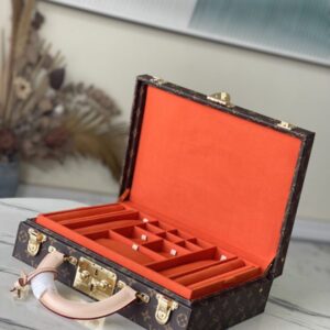 This Monogram jewelry case is especially suitable for carrying precious items when traveling. There are thirteen compartments of different sizes, which are opened and closed by S lock and two suitcase mortise locks. This product is expected to arrive in more than three months.