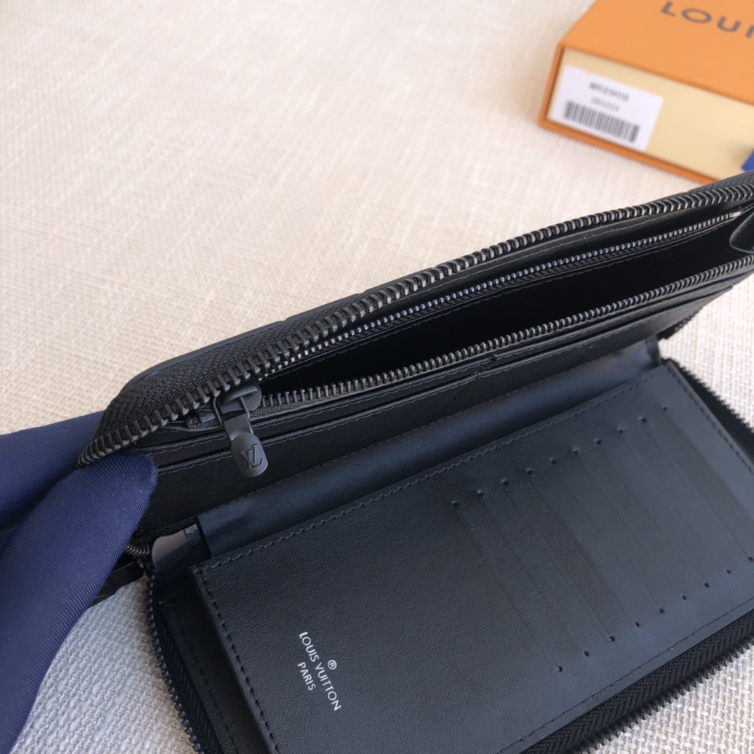 Exclusive real shot! Elegant and secure, the Zippy Vertical Wallet is crafted from supple Monogram Shadow calfskin embossed with the iconic Louis Vuitton Monogram. The highly textured pure black color scheme complements the simple shape, and the wraparound zipper design brings together many practical elements.