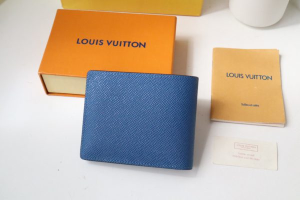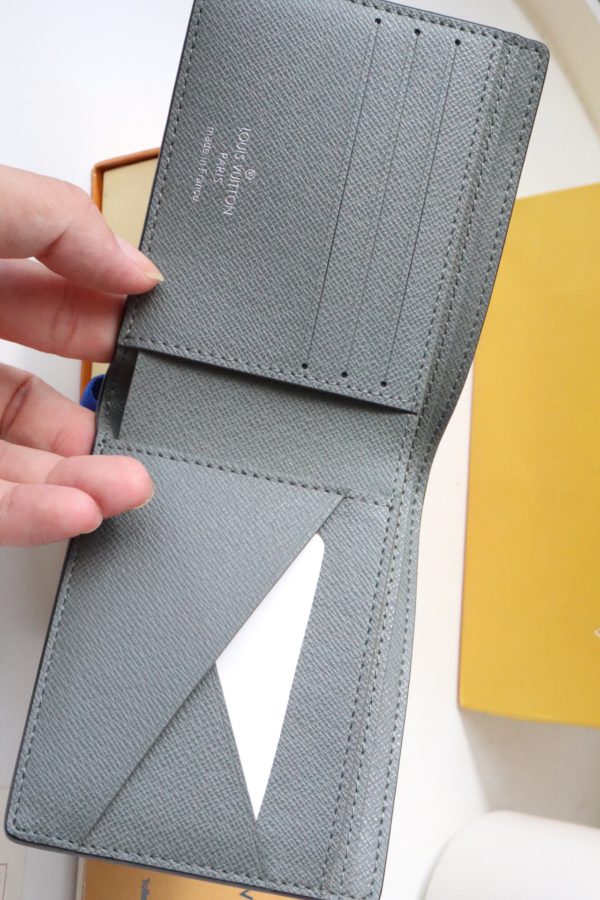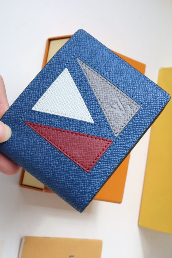 The Multiple Wallet pays homage to Louis Vuitton’s heritage with traditional marquetry, delicately pieced together in Taïga leather and infused with contemporary colors with V-shaped inlays. The interior has card slots and compartments, making it an everyday companion for the modern man.