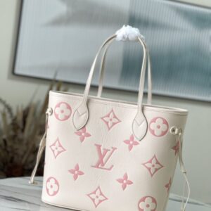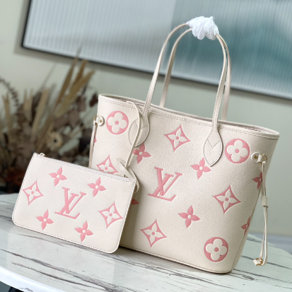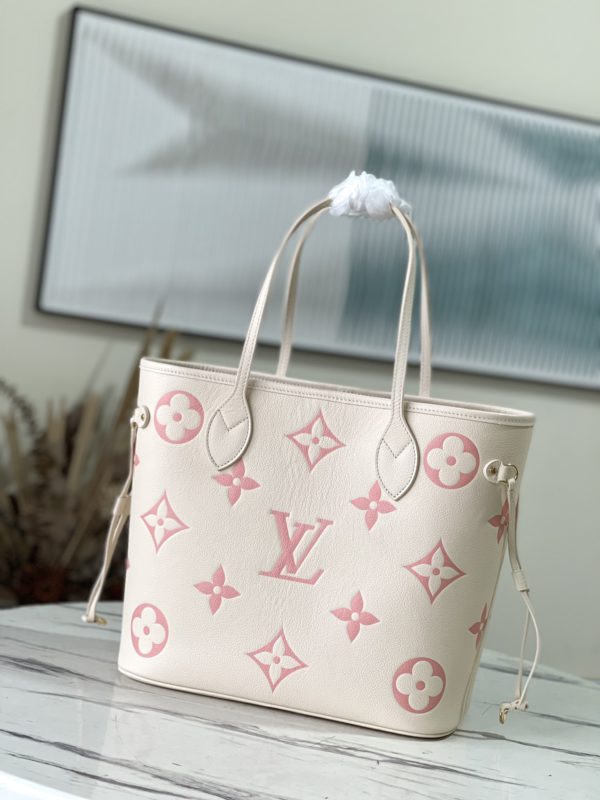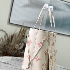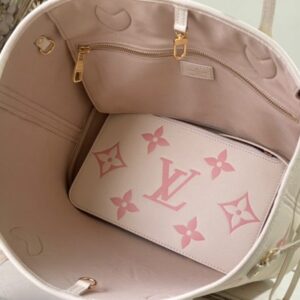Creamy White and Pink Silkscreen Neverfull Medium Shopping Bag Redesigned inner pocket with fresh fabric lining and vintage details inspired by the Louis Vuitton archives, the most commendable is the detachable zipper Clutch, it can be used alone as a delicate clutch, or as an additional pocket.