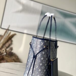 This Neverfull medium-sized handbag uses Monoglam coated canvas to create eye-catching holographic visual effects. The canvas is made from a jacquard base woven with cotton and decorative threads, with a reflective coating that changes color in response to light. Slim handles allow for comfortable shoulder and elbow carry.
