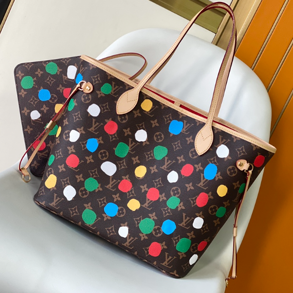 Presbyopia color polka dot screen printing Neverfull Explore the exquisite details in the bag. Redesigned interior pockets feature fresh fabric linings and archive-inspired vintage details, best of all is the detachable zipped clutch, which can be worn alone as a sophisticated clutch or as a Extra pockets. Bright lining shades add more liveliness to Monogram’s classic canvas.