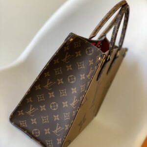 Black Leather Long Shoulder Strap Onthego Medium Handbag The classic Monogram canvas and Monogram Reverse canvas are divided into two sides, showing different styles at will. The Toron’s dual handles and shoulder strap allow for a variety of carrying options.