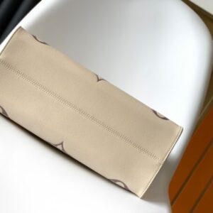 White printing Monogram pattern printed and dyed first, then embossed Softer than grained cowhide, its ample interior can accommodate laptops and computers For other office supplies, the long and short handles are easy to carry by hand or on the shoulder.