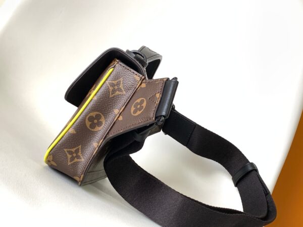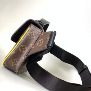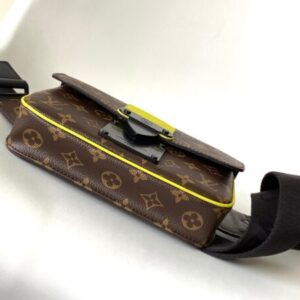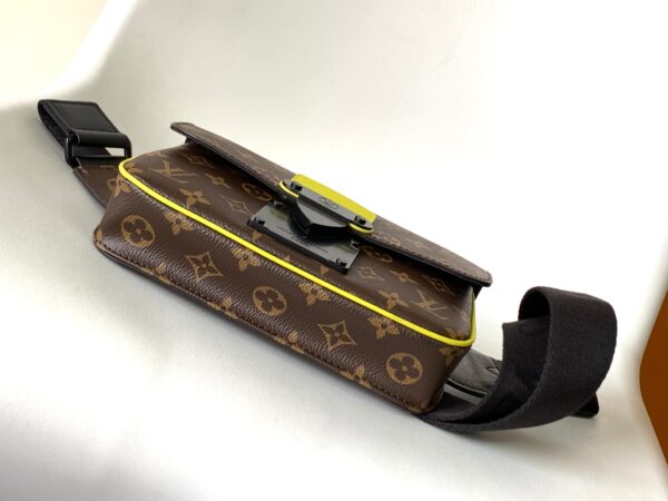 This new S Lock Sling handbag is equipped with a magnetic closure inspired by traditional hard case locks to keep personal items safe and secure. Monogram Macassar canvas with creative black metal locks accented with neon yellow accents. The sturdy, case-style handle and adjustable shoulder strap are branded for a variety of carrying options.