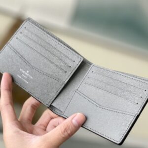 Saffiano Green This Slender Wallet features a calm tone of Taïga embossed leather and a slim profile that includes card slots and bill compartments, and fits easily in most pockets.