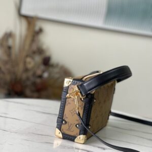 Yellow flower black leather Nicolas Ghesquière repeatedly explored the heritage of box making to create this Side Trunk small handbag. Monogram canvas is combined with leather trim, and the leather zipper puller is creatively connected with the iconic S-lock buckle, and the reinforced metal corners gather the sight together. The wide handles and thin leather shoulder strap are detachable.