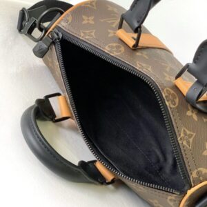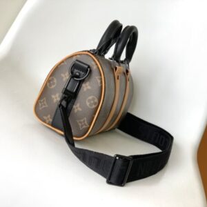 This Keepall 25 handbag is made of Monogram Eclipse Reverse canvas, presbyopic black leather color matching tag small 25 pillow speedy pillow bag oo[handshake][handshake] shows the elegant reinterpretation of Louis Vuitton’s classic patterns. Reinforced straps and leather nameplate continue the signature elements of the Keepall collection Zipper closure keeps personal items secure.