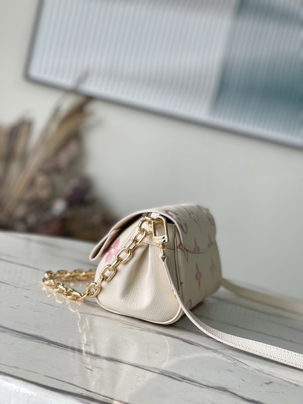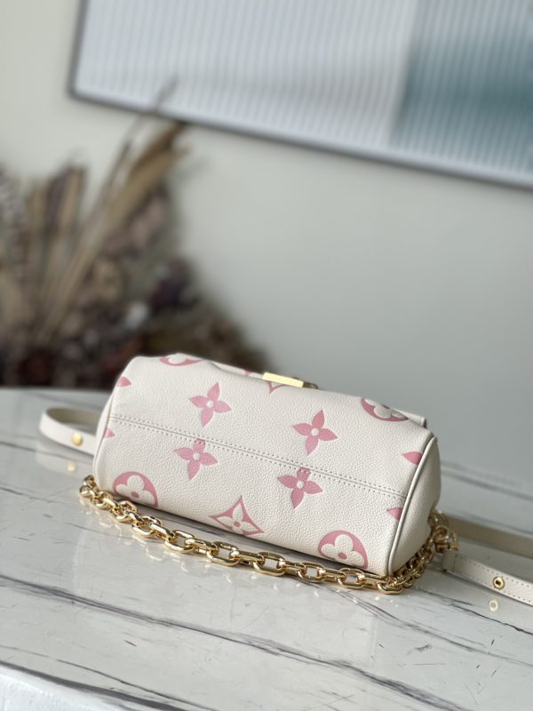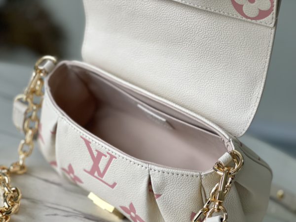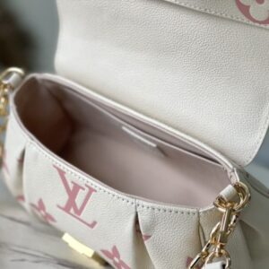 Favorite handbags are soft grained leather embossed with oversized Monogram pattern, gentle pleats infused with high-definition texture, and the magnetic buckle continues the inheritance. The detachable and adjustable shoulder strap enables short shoulder and cross-body wear, and the detachable chain is suitable for evening occasions.
