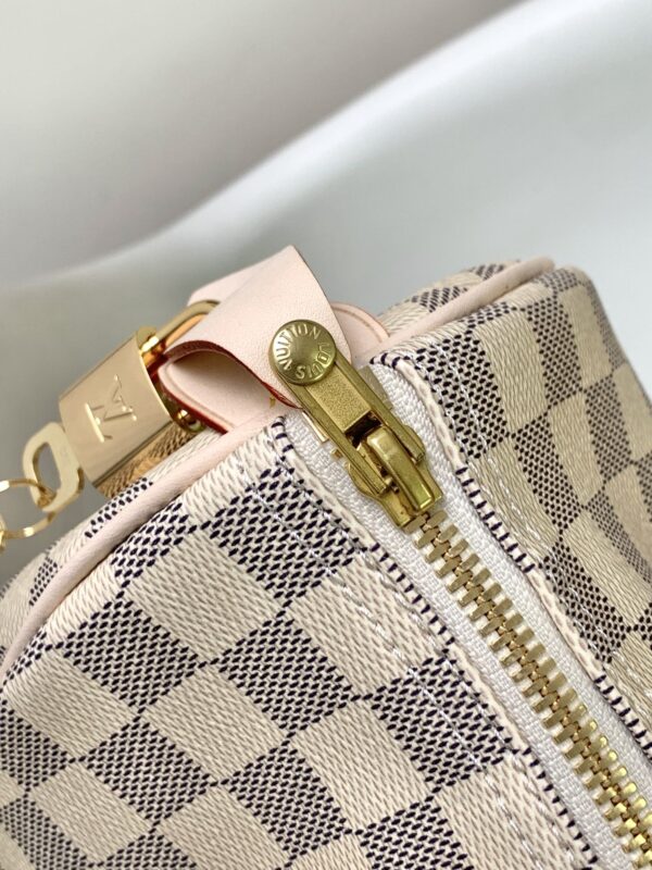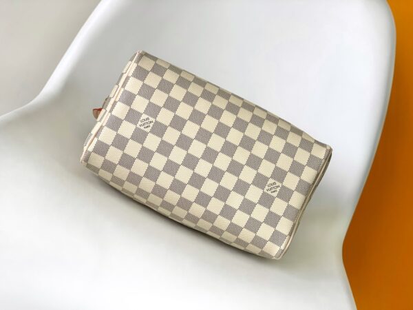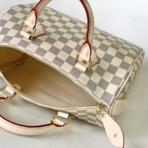 This Speedy 25 handbag is made of soft Damier Azur canvas, elegant and compact, a good companion for urban life. Based on the “Express” bag launched in 1930, it pays tribute to the era of rapid change. The outstanding silhouette, rolled leather handle and engraved padlock, today’s improved Speedy handbag is still the brand’s masterpiece.