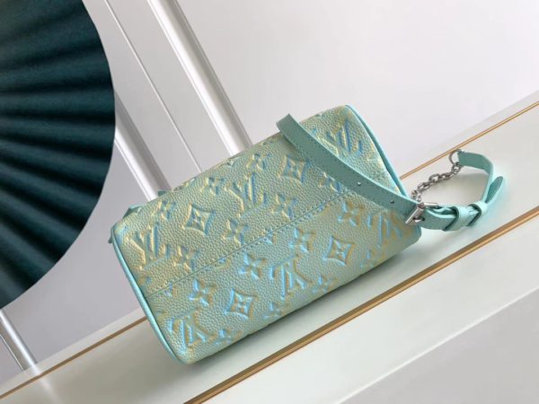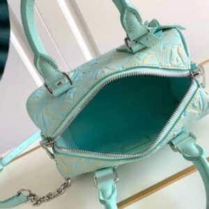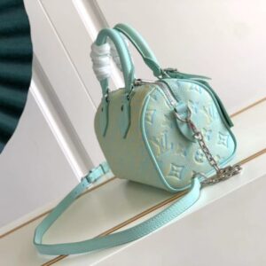 This Speedy Bandoulière 20 handbag reveals subtle luster in new season colors. The classic shape, rolled leather handle and key holder recall the design elements of Louis Vuitton luggage in the 20th century, and the detachable chain and leather shoulder strap can be carried on the shoulder or cross-body.