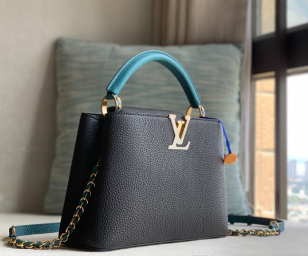 Louis Vuitton Taurillon Leather Capucines BB Medium Bag – Black/Blue