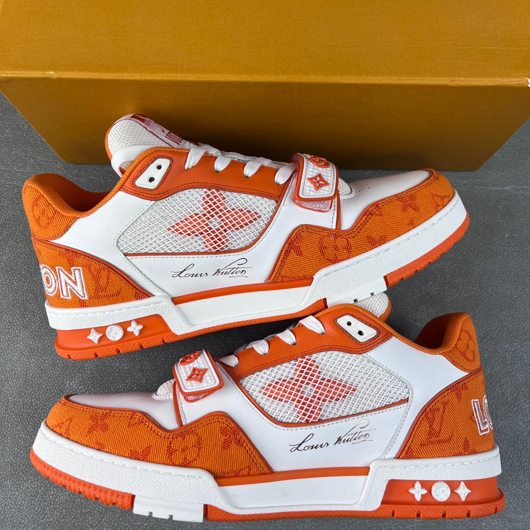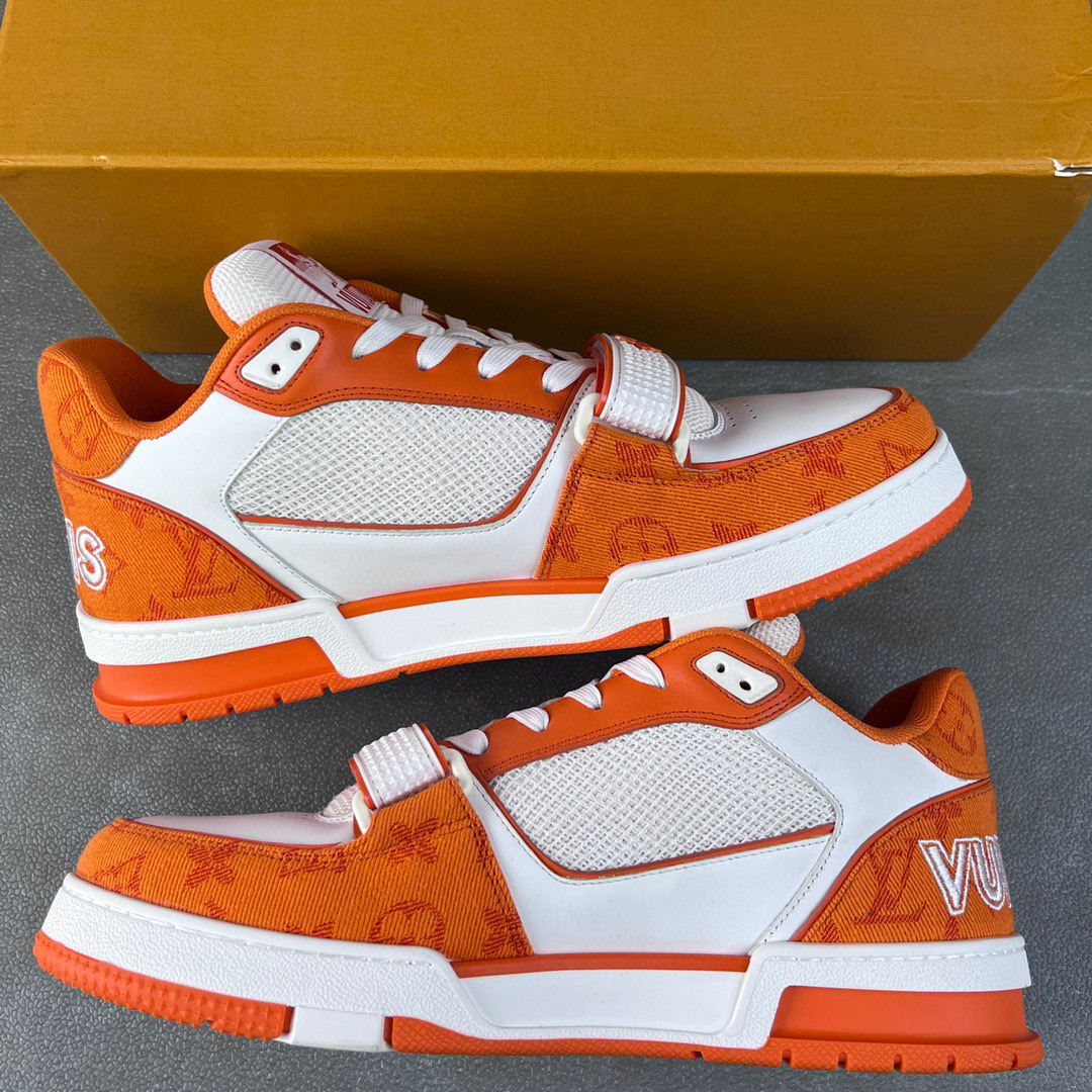 Louis Vuitton Trainer Velcro Fastening Low-Top Casual Shoes, Skate Shoes, Trainers for Men and Women in White and Orange 1A9ZBI