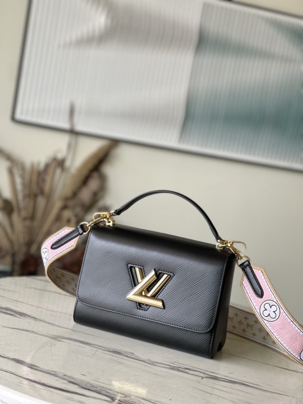 This Twist medium handbag is equipped with an embroidered fabric shoulder strap, which makes the pocket version of the classic Monogram flower and traditional Monogram pattern divided into two sides, supplemented by Epi grained leather body, blowing the season with the style of the 1970s Midsummer wind. Cut for a wide fit to wear cross-body.