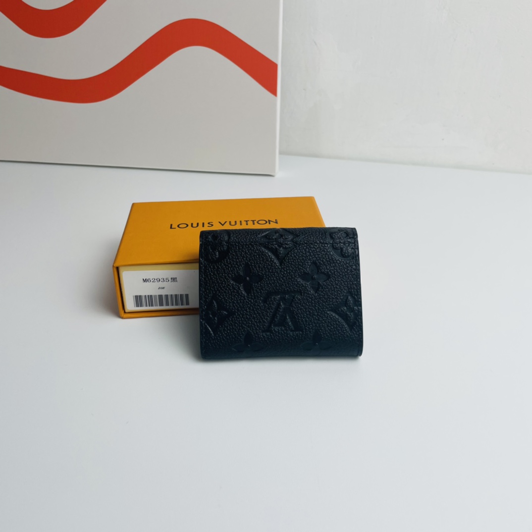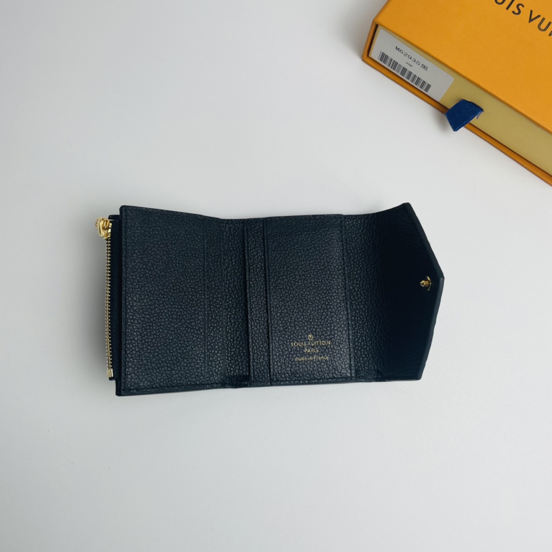 Black exclusive real shot! Zoe compact wallet in supple Monogram Empreinte grained leather embossed with the iconic Louis Vuitton Monogram. The size of any small bag is easy to store, enough to store coins, banknotes and credit cards, and it is a compact and mini portable accessory.