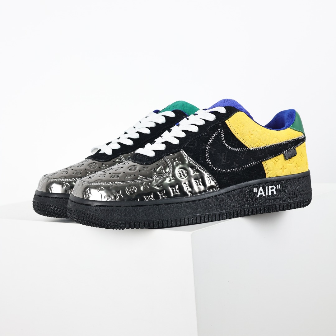 Original Box Version with Accessories Louis Vuitton Air Force 1 Low LV Air Force Low-Top Casual Shoes / Sneakers / Skate Shoes Men’s Shoes / Women’s Shoes Black/Yellow/Silver 1A9VCH