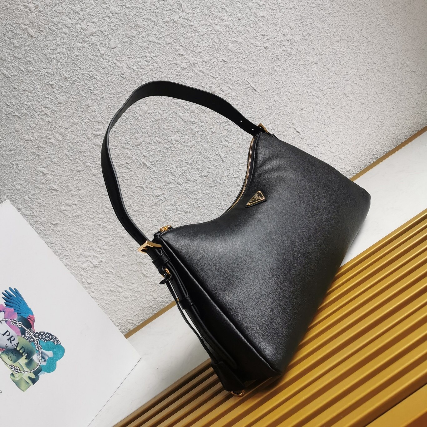 Prada Aimee Large Shoulder Bag in Black Leather