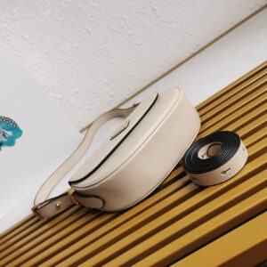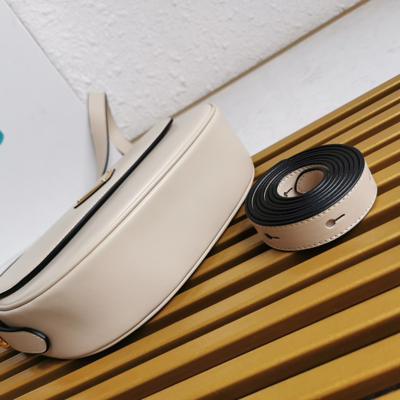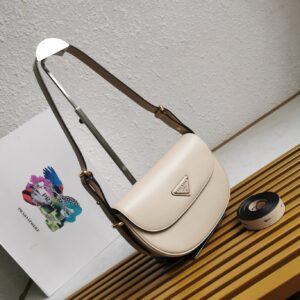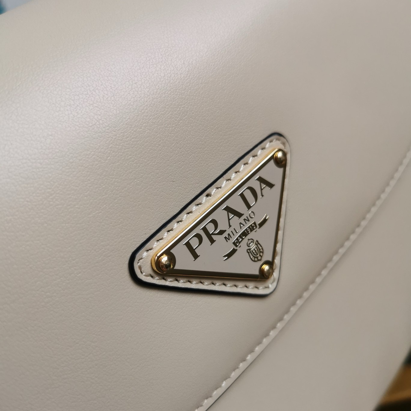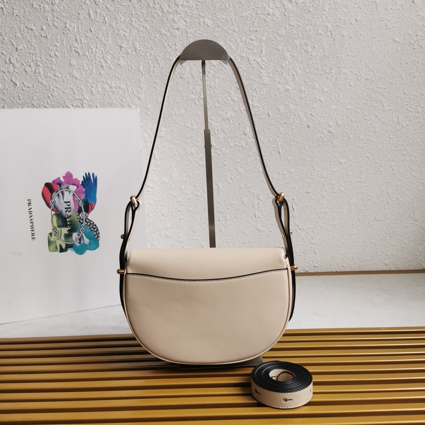 Prada Arque Shoulder Bag with Flap in Beige Leather