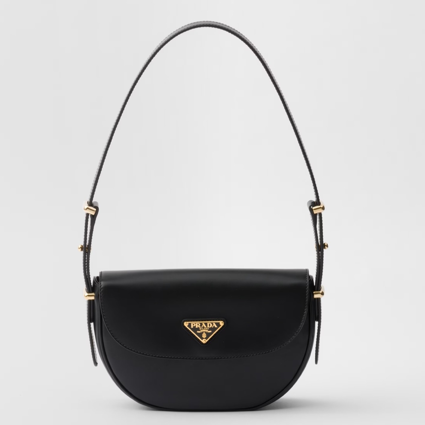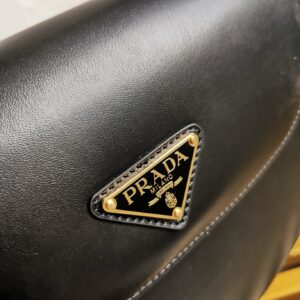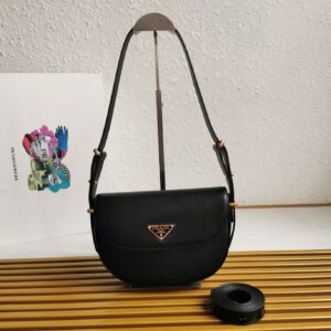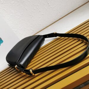 Prada Arque Shoulder Bag with Flap in Black Leather