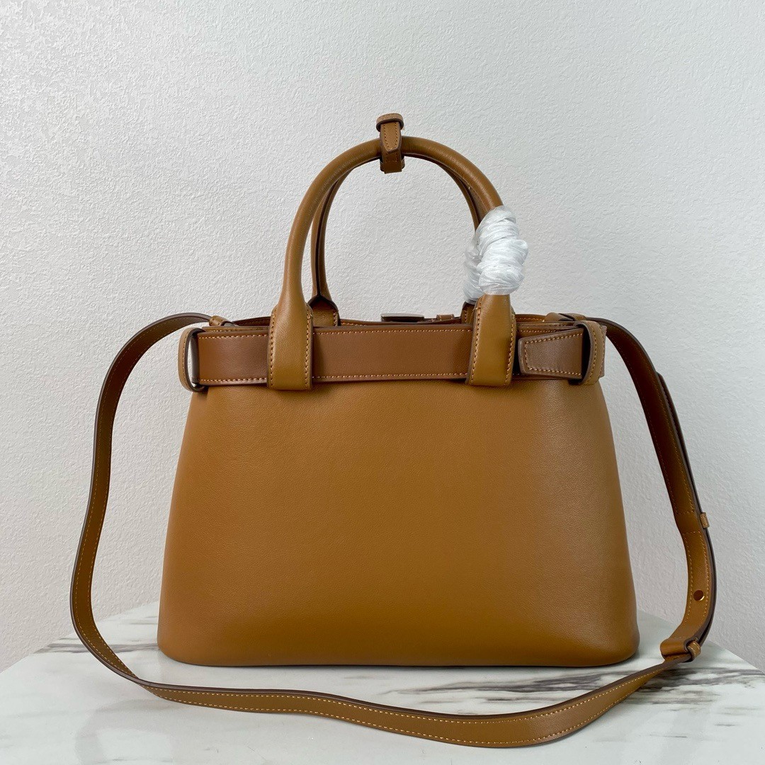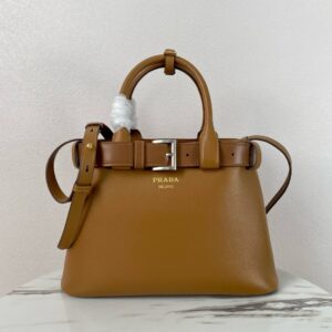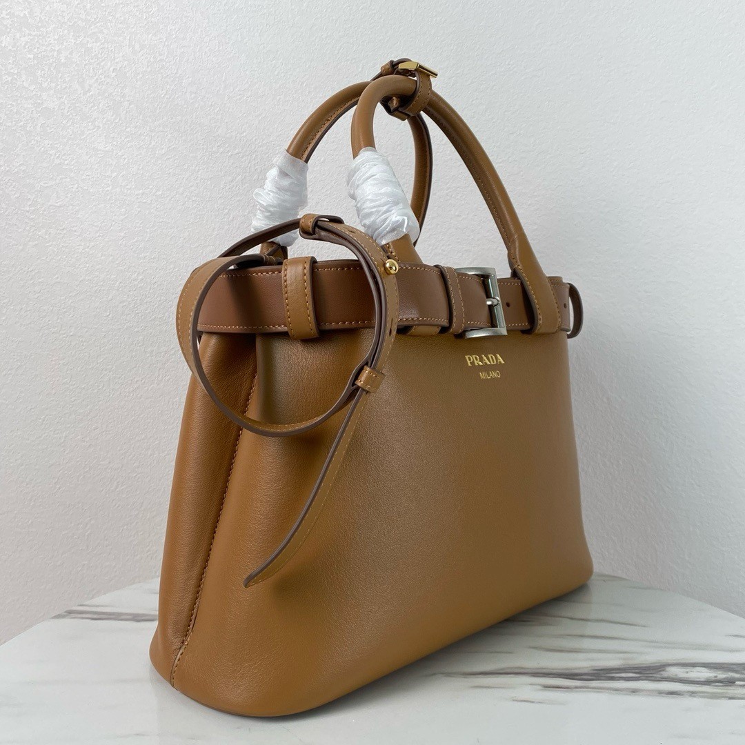 Prada Buckle Medium Bag with Belt in Brown Leather