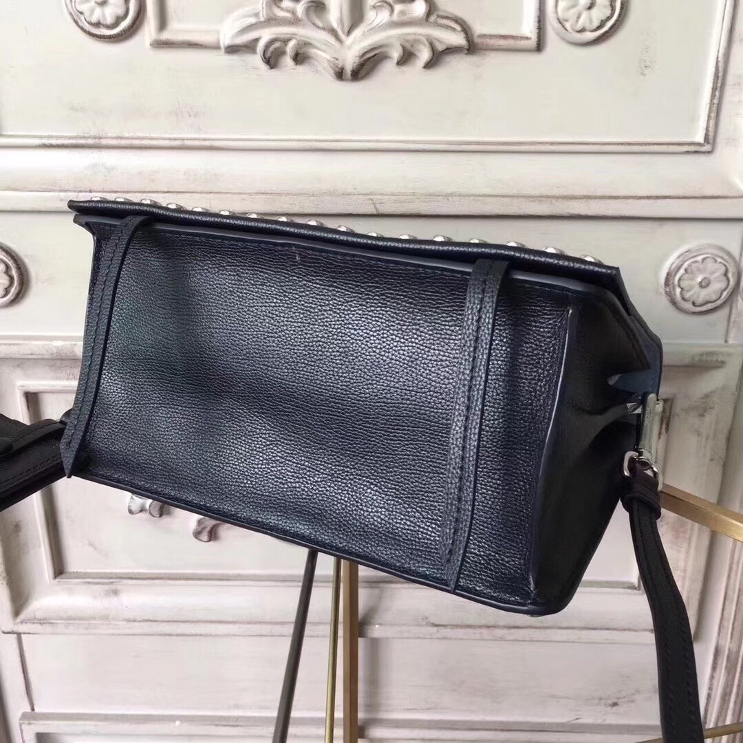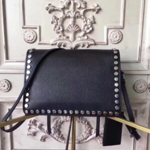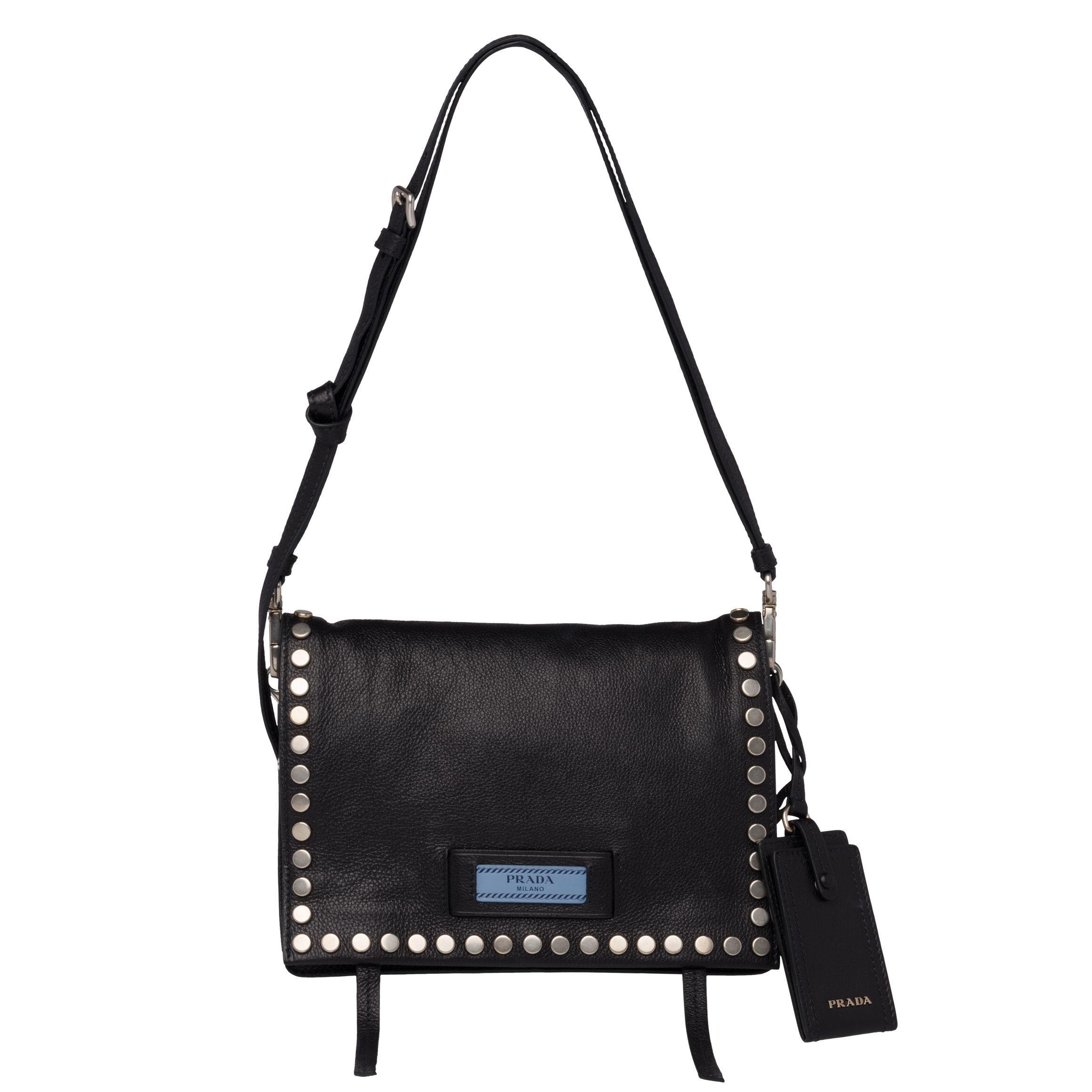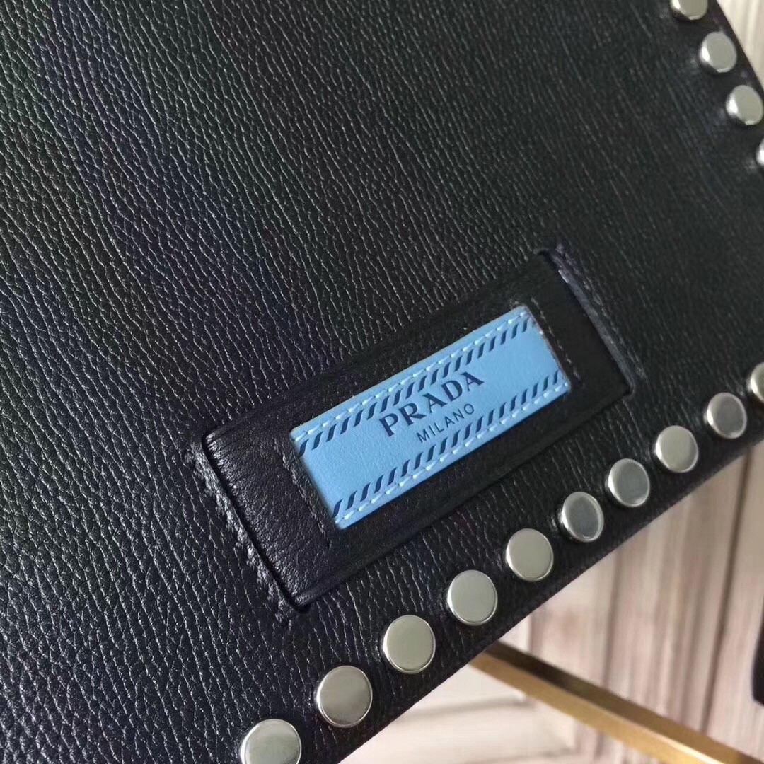 Prada Etiquette Bag In Black Calfskin With Metal Stud Trim