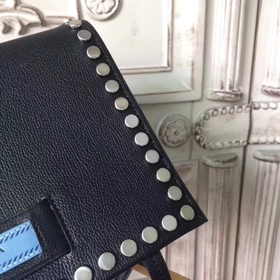 – Calf leather with metal stud trim