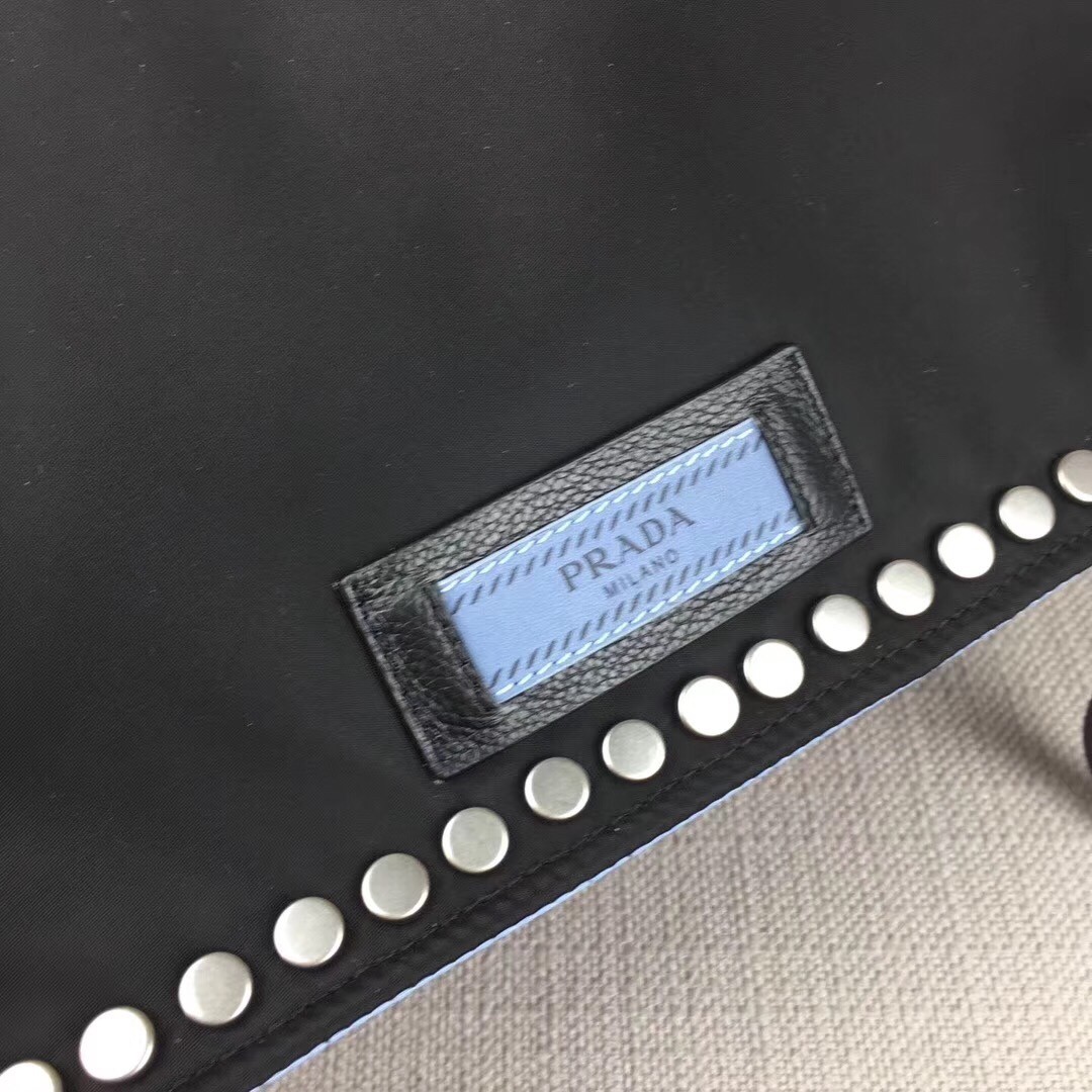 – Prada Etiquette logo on leather in a contrasting color