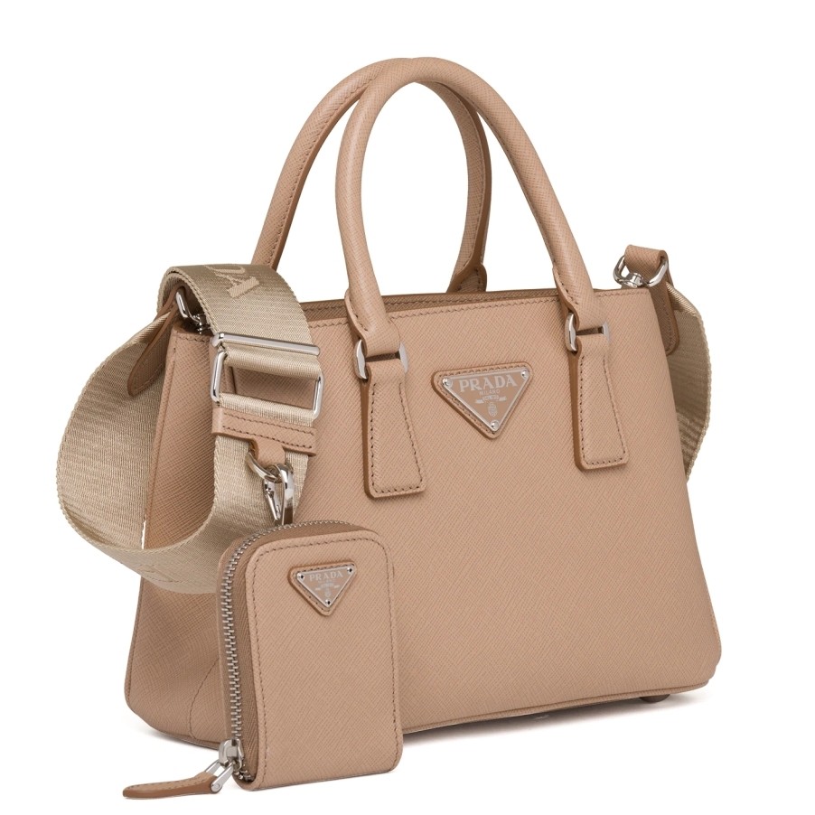 Prada Galleria Micro Bag In Beige Saffiano Leather