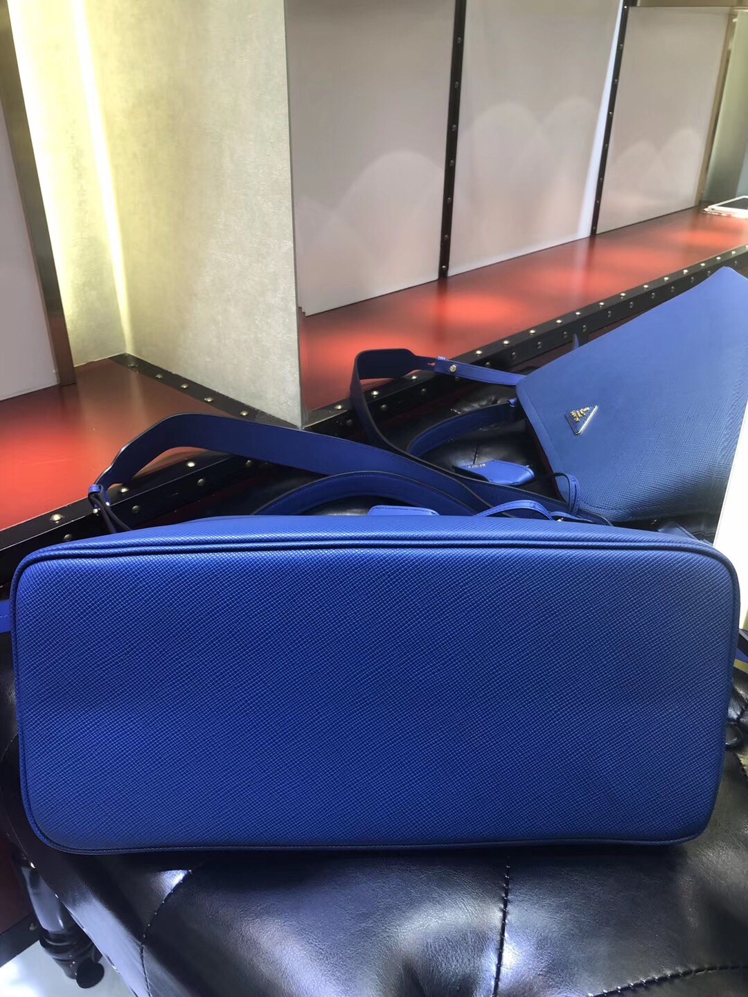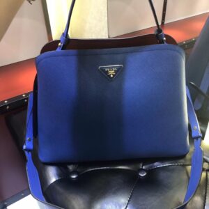 Prada Matinee Tote Bag In Blue Saffiano Leather